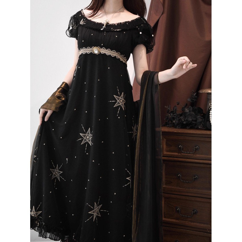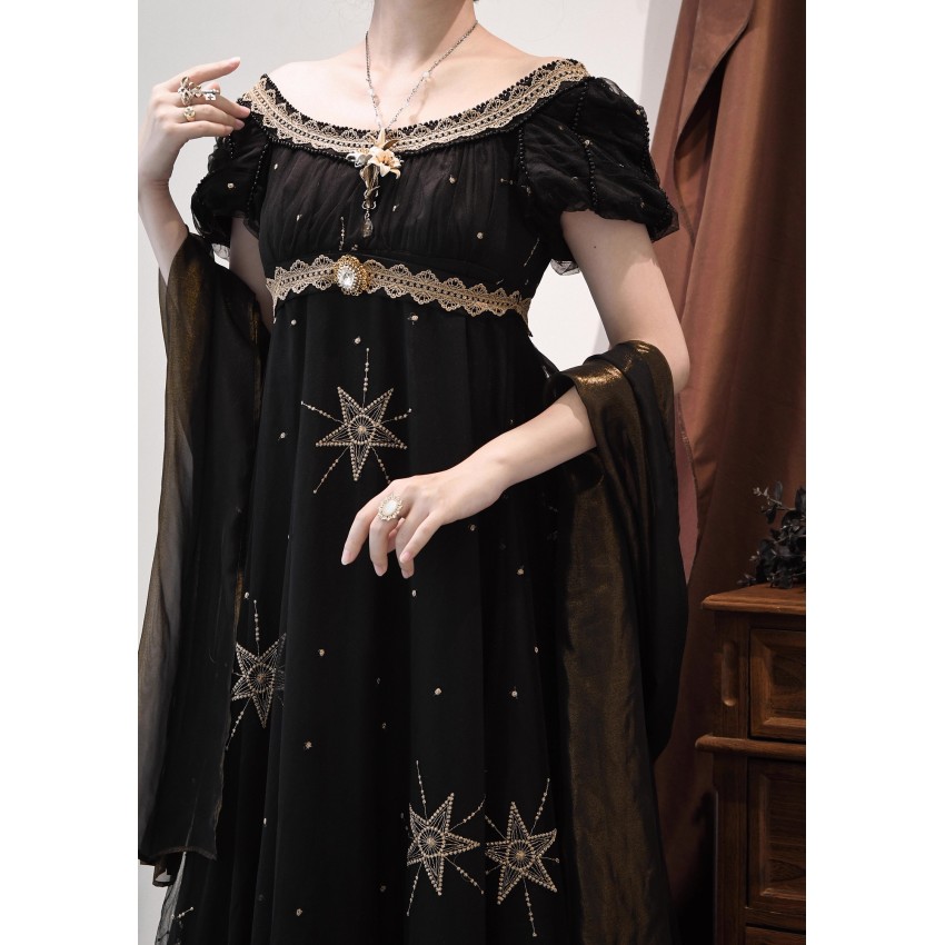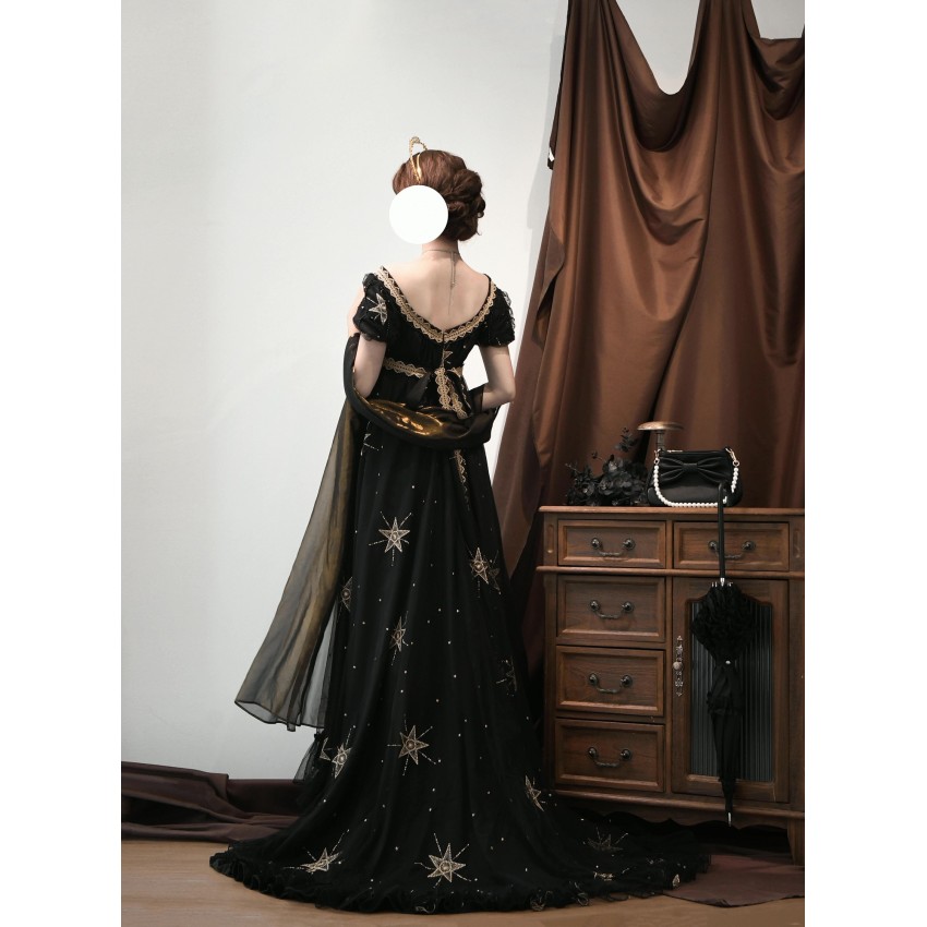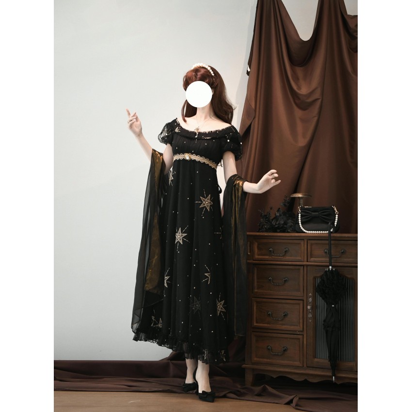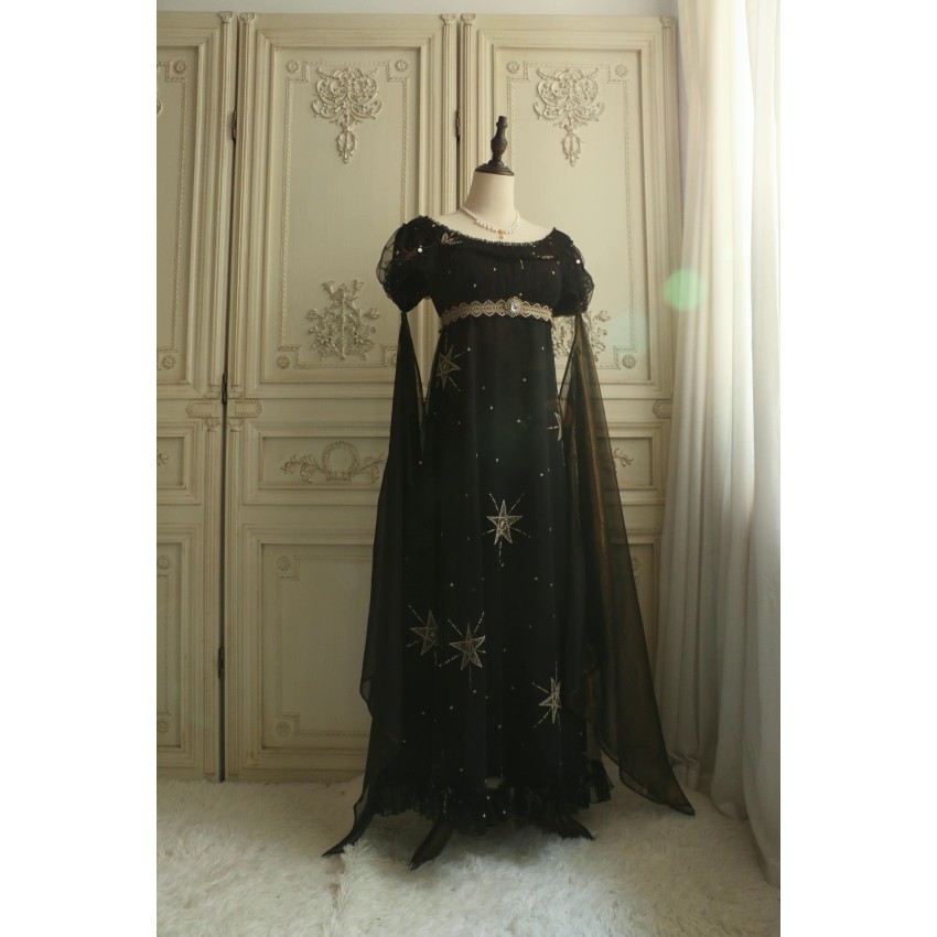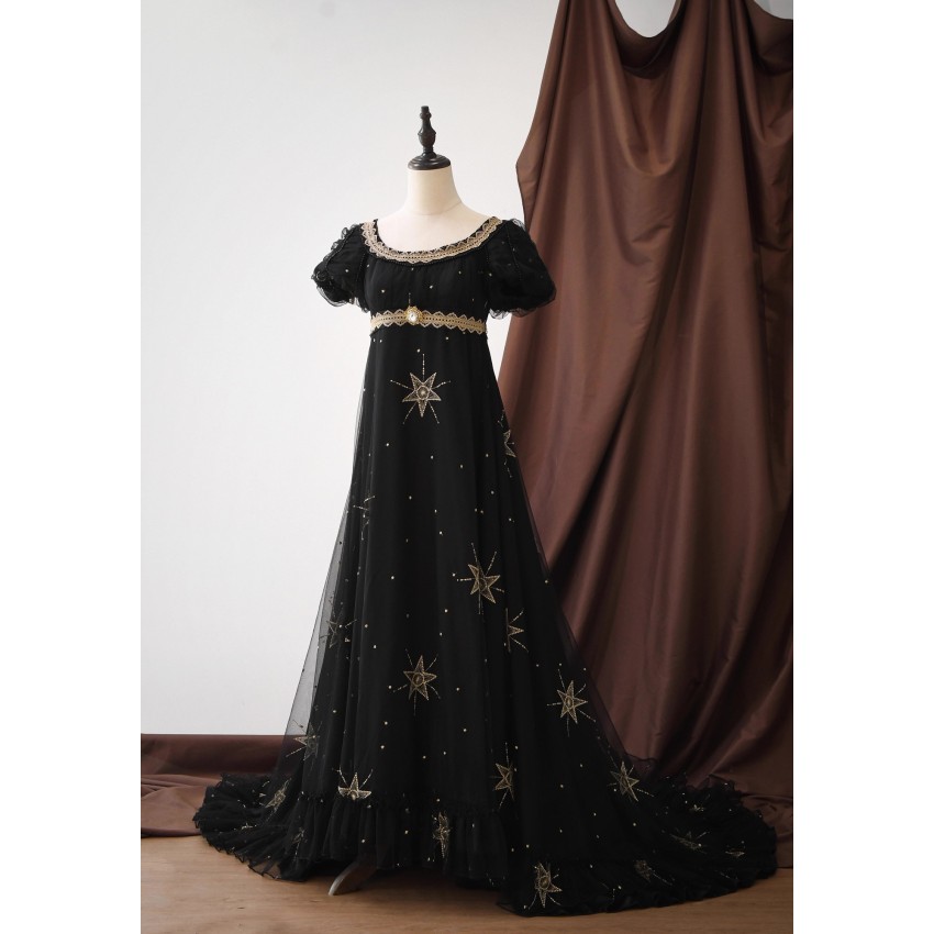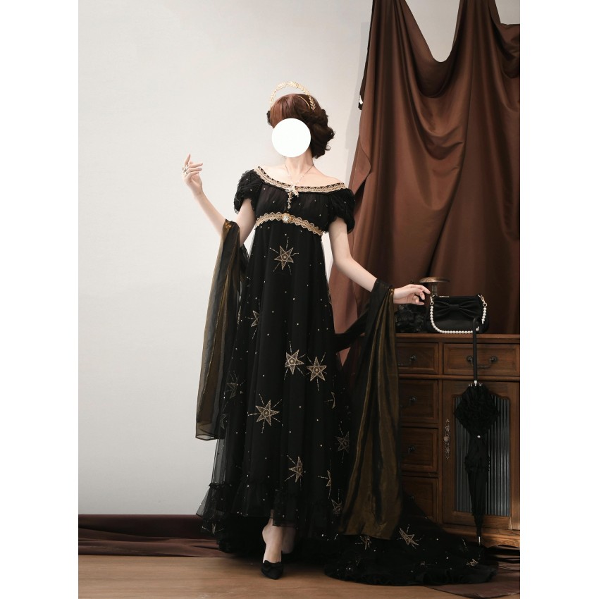 Faeries Daffodil Yoru Nova Black Gold Embroidered Daily and Trailing One Piece(Reservation/Full Payment Without Shipping)