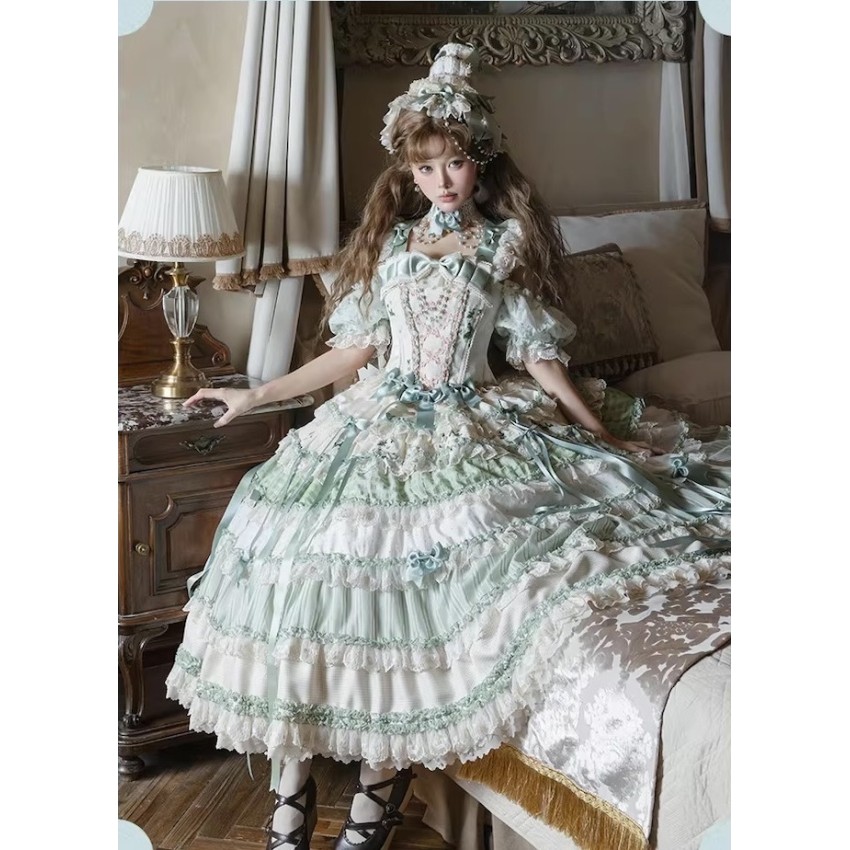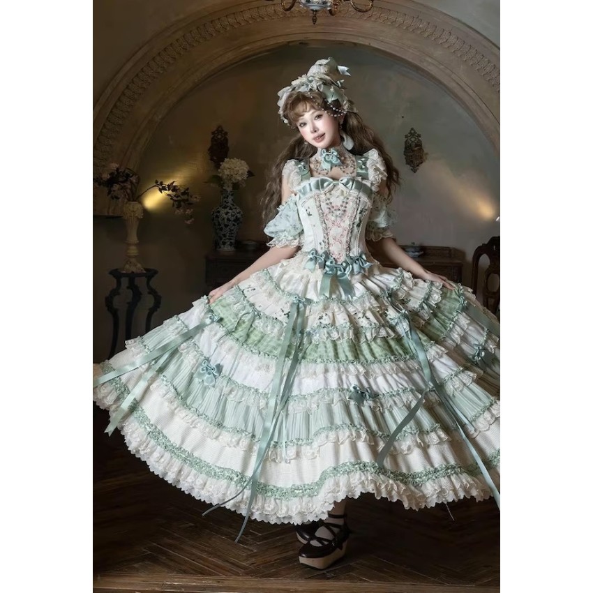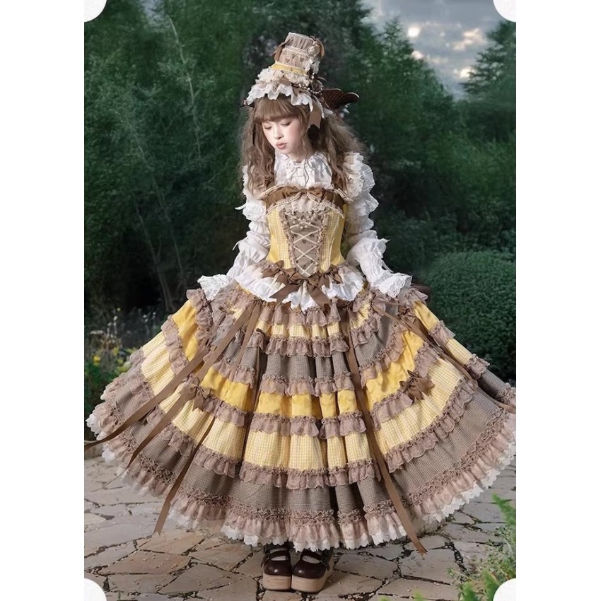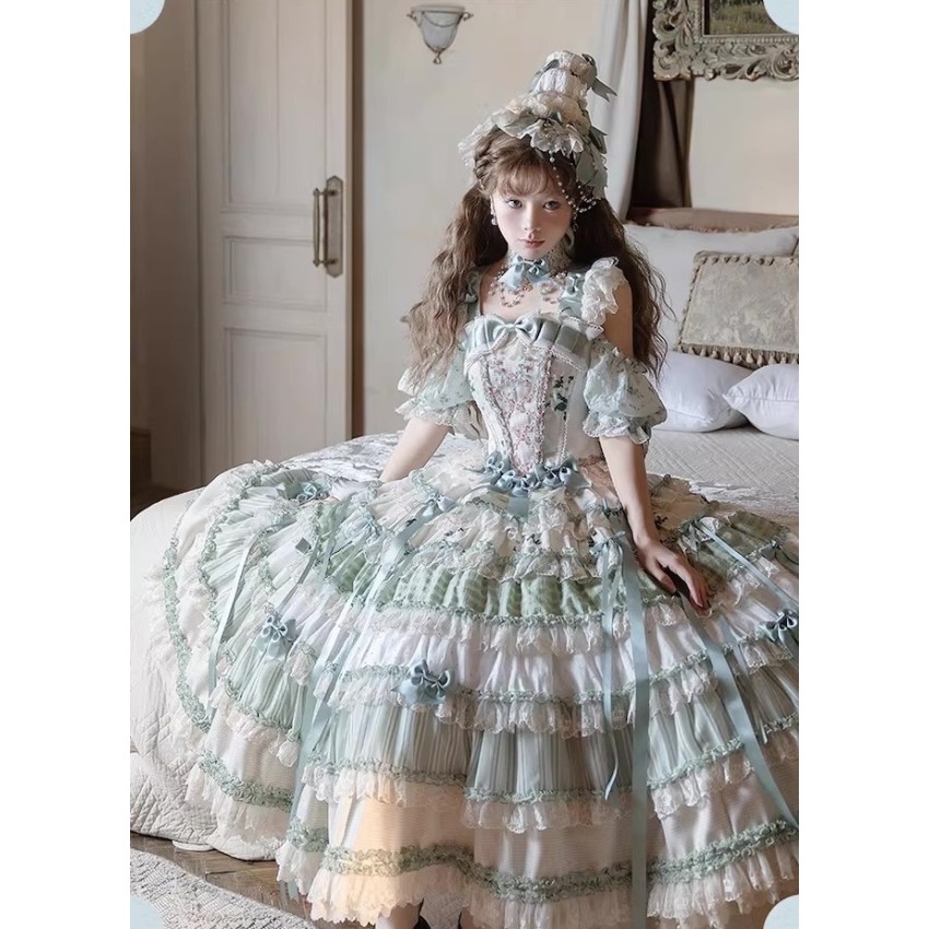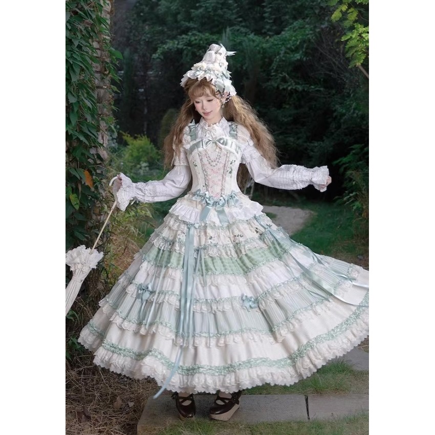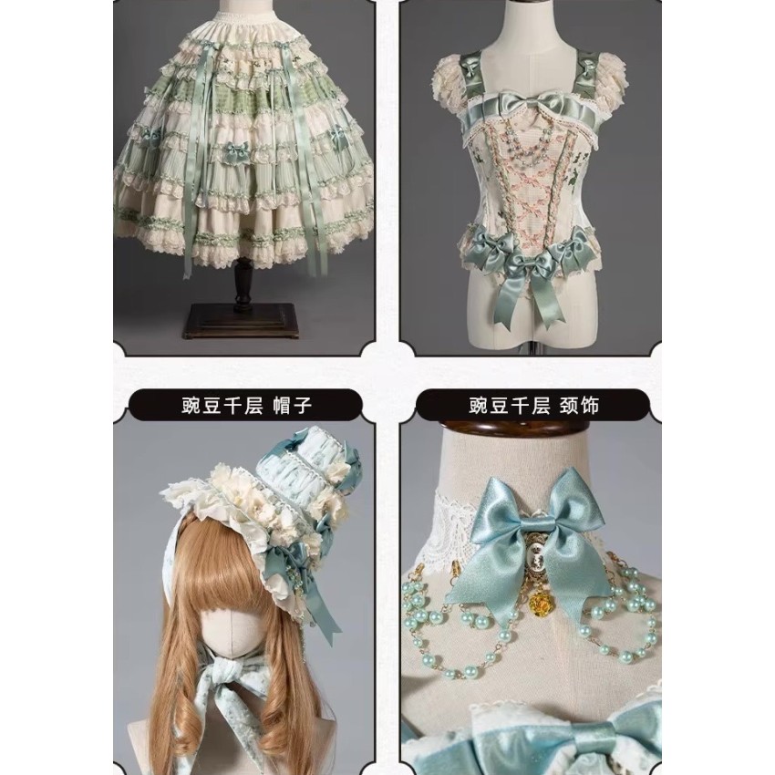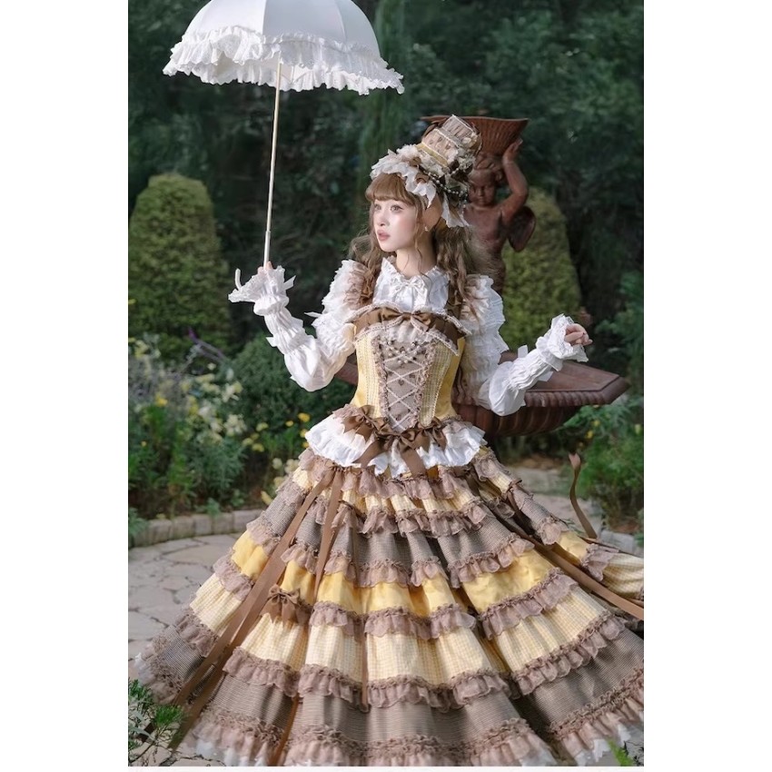 This is the full payment of the items WITHOUT shipping cost. You will have to pay the shipping cost after the items are ready to ship(We will inform you to pay the shipping then)If you prefer to put down a deposit for now(50% exclusive of shipping cost and pay the remainder after they are ready to ship) or do payment plans, please send us an email and order it through email like before.- Full Set includes Corset Top+Skirt+Hat+Choker.- Top: Spiral steel boning with lacing up on the back. The pearl chain on the chest is detachable. Zipper located at the side. The lantern sleeves are detachable.- Skirt: 6-tier full skirt design. The waist is shirred with lacing inside to adjust the waist. The bows are all not detachable.Estimated Shipping Time: Jul/2026