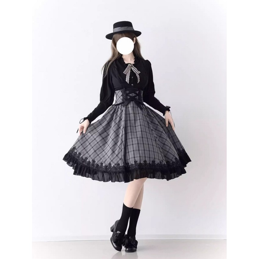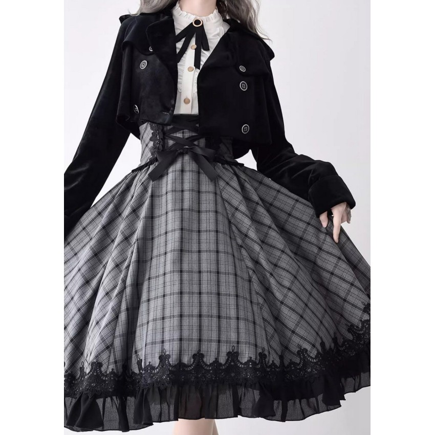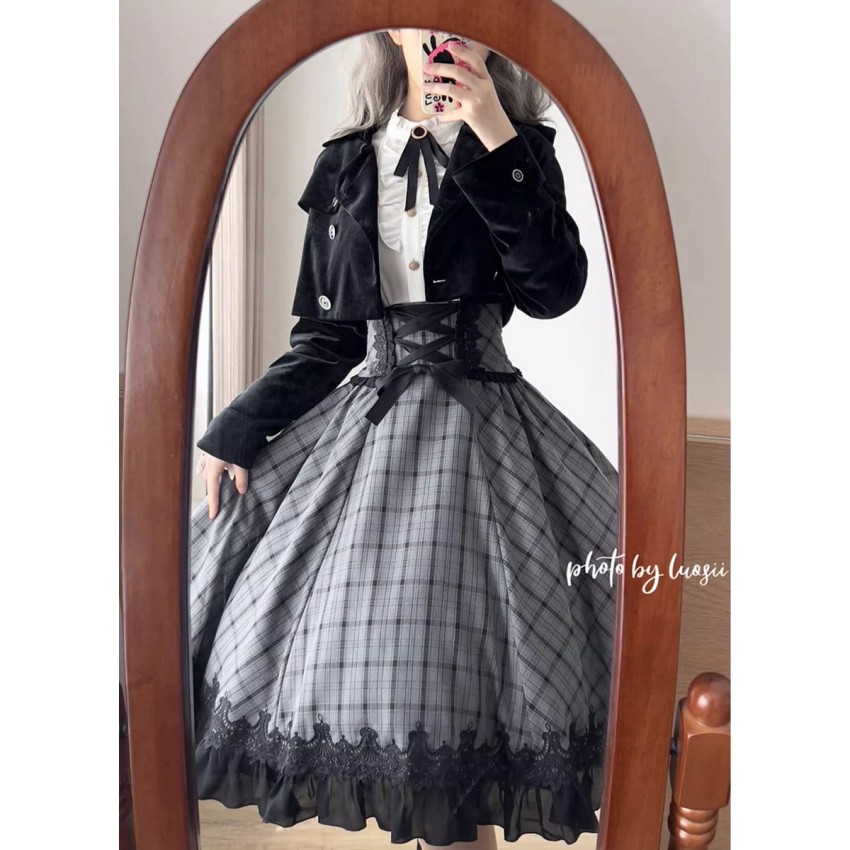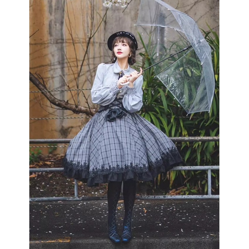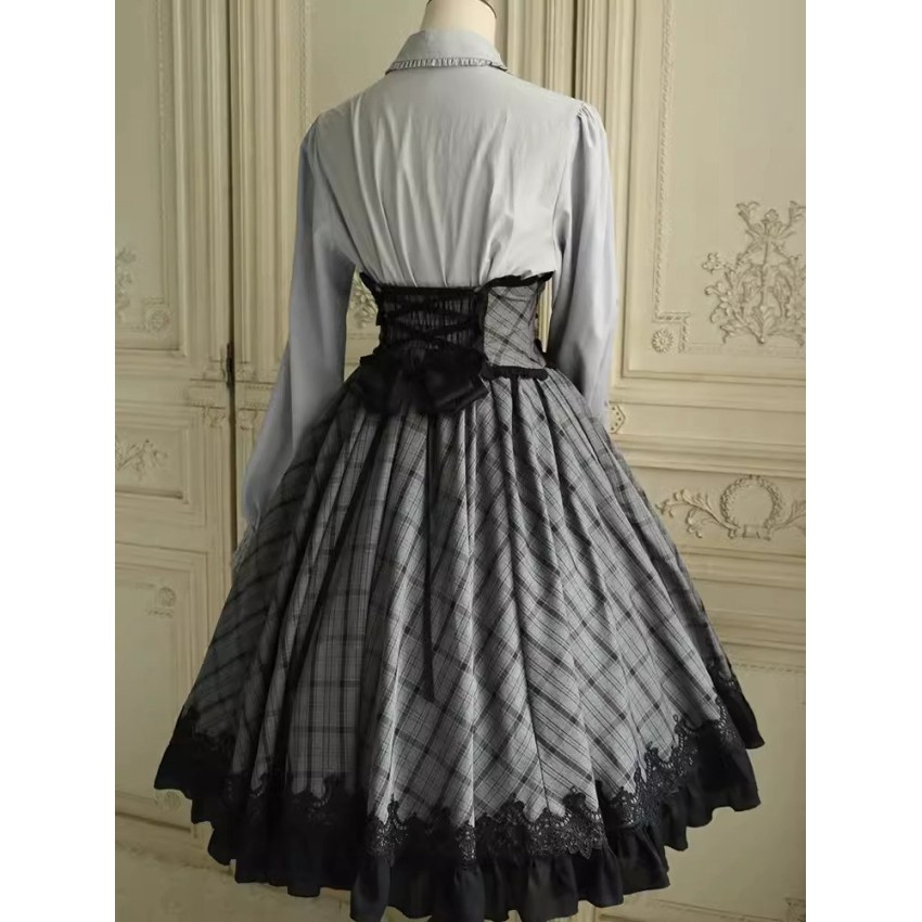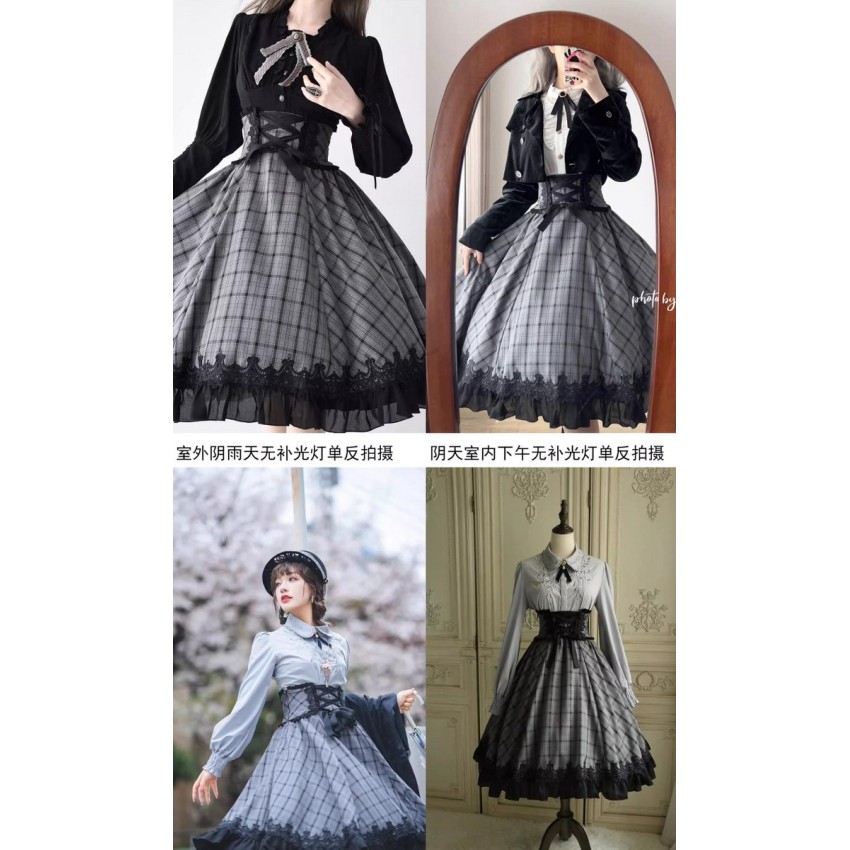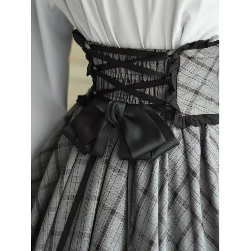 Faeries Daffodil Black Grey Check Corset Skirt(Reservation/Full Payment Without Shipping)