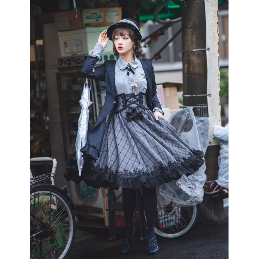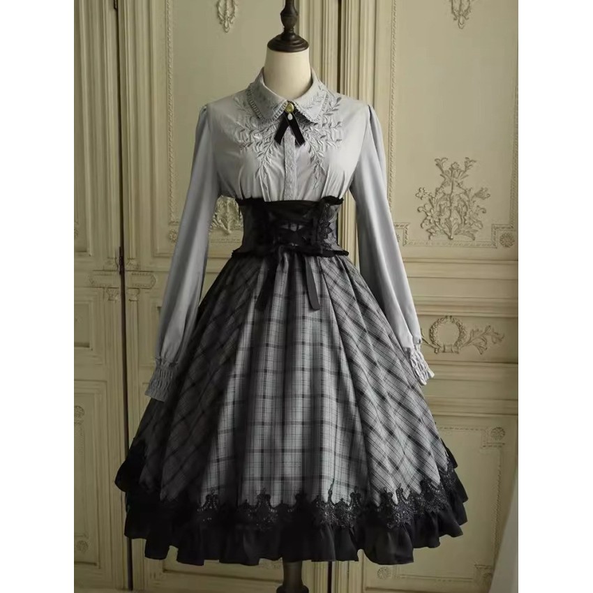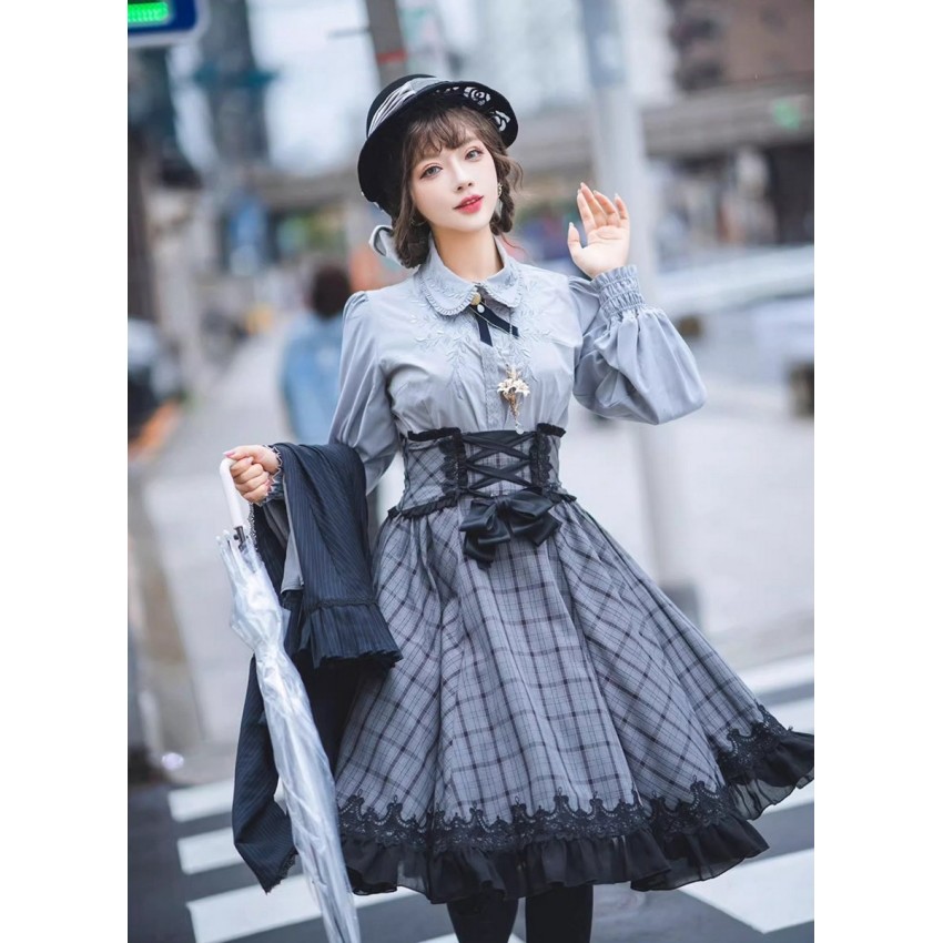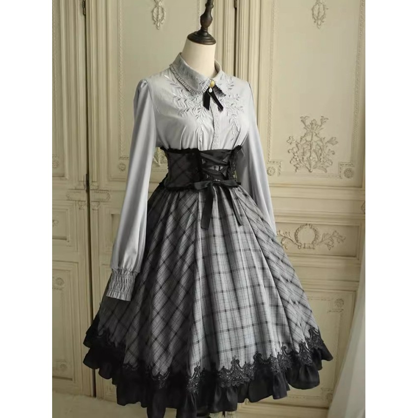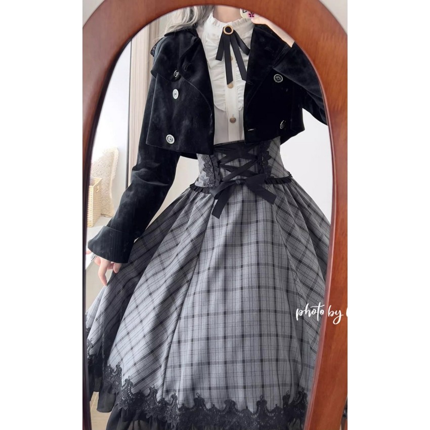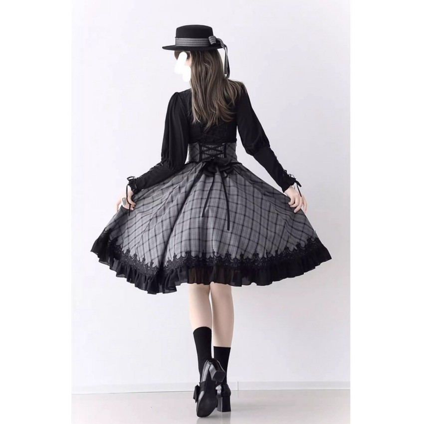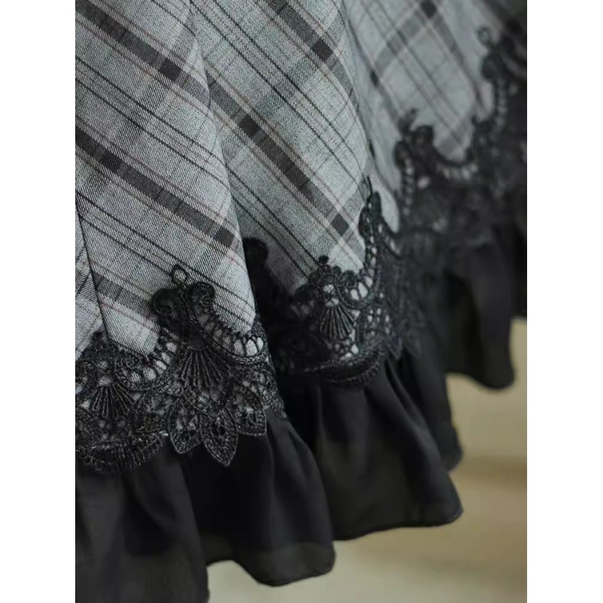 Faeries Daffodil Black Grey Check Corset Skirt(Reservation/Full Payment Without Shipping)