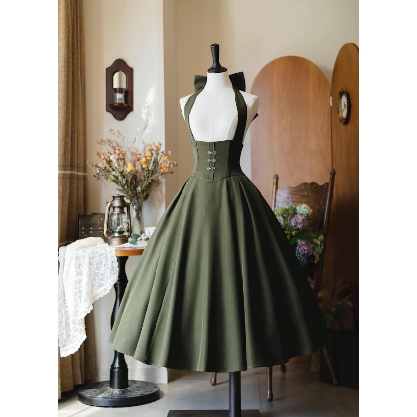 - The halter neck strap is detachable. 2 big side pockets available on the Skirt. There's plastic corset bones in the waist of the Skirt.