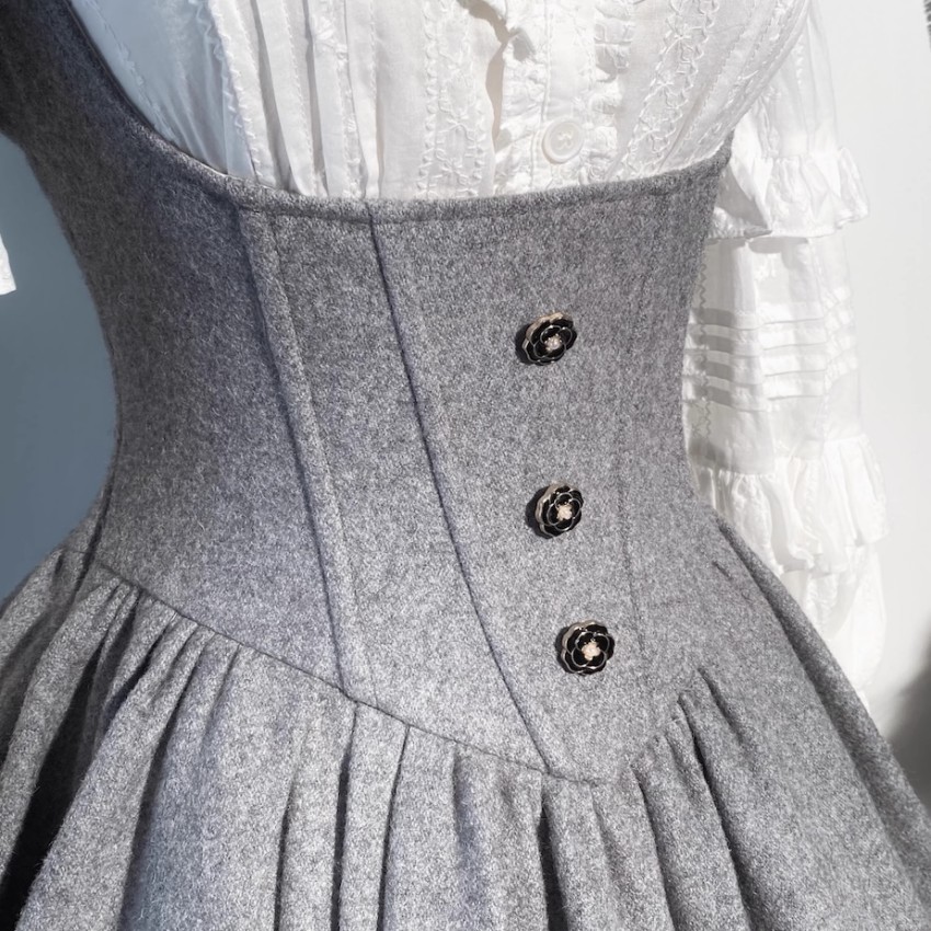 Material: 40% Wool+60% Polyester. Lining: Cotton(Underbust JSK), TR(Cape)