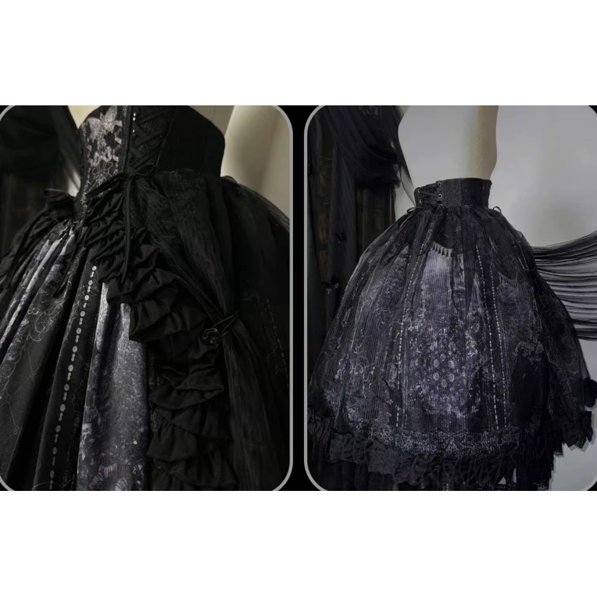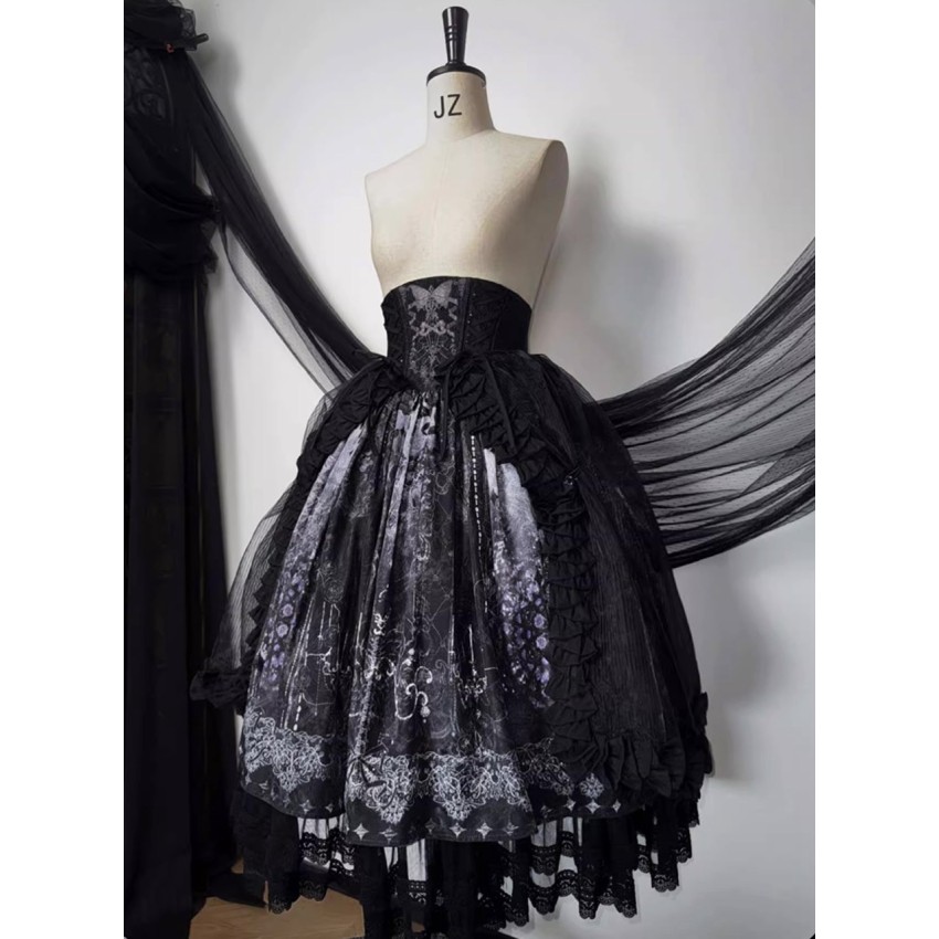 The larger end of Waist is the measurement when the back shirring is stretched(The smaller end are laid flat measurements of the Corset Skirt without stretching the back shirring).
