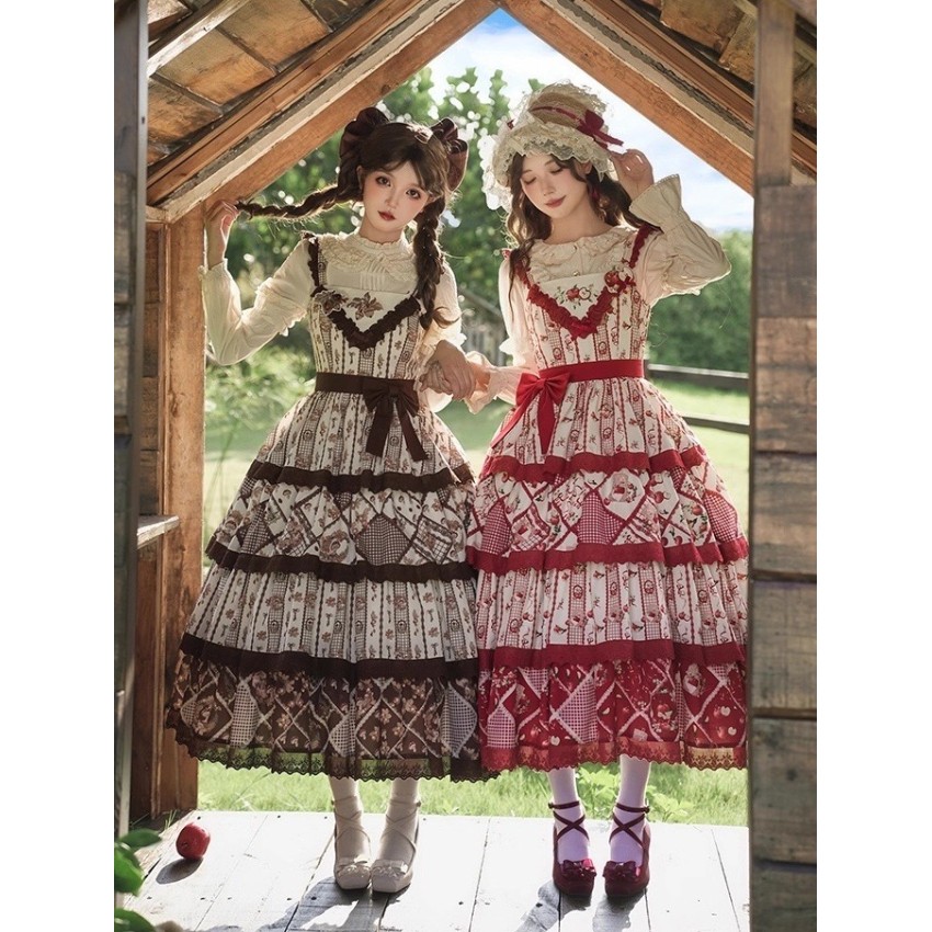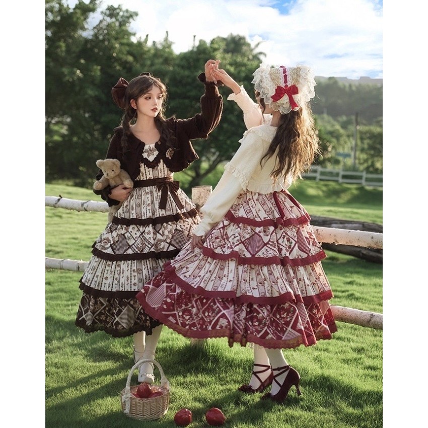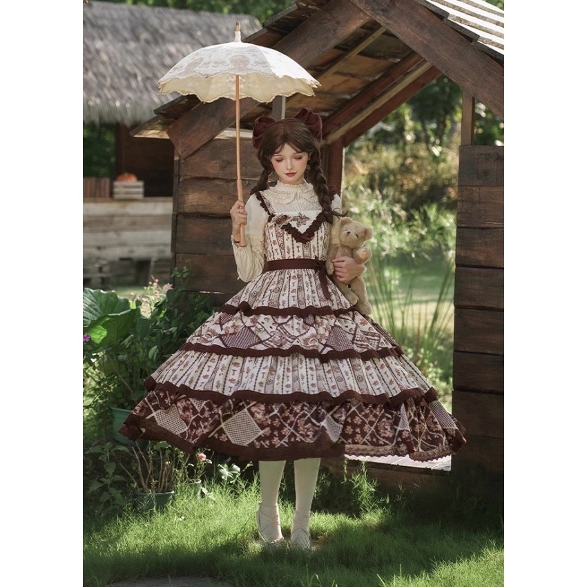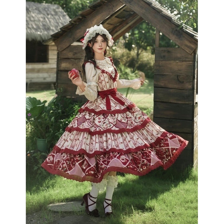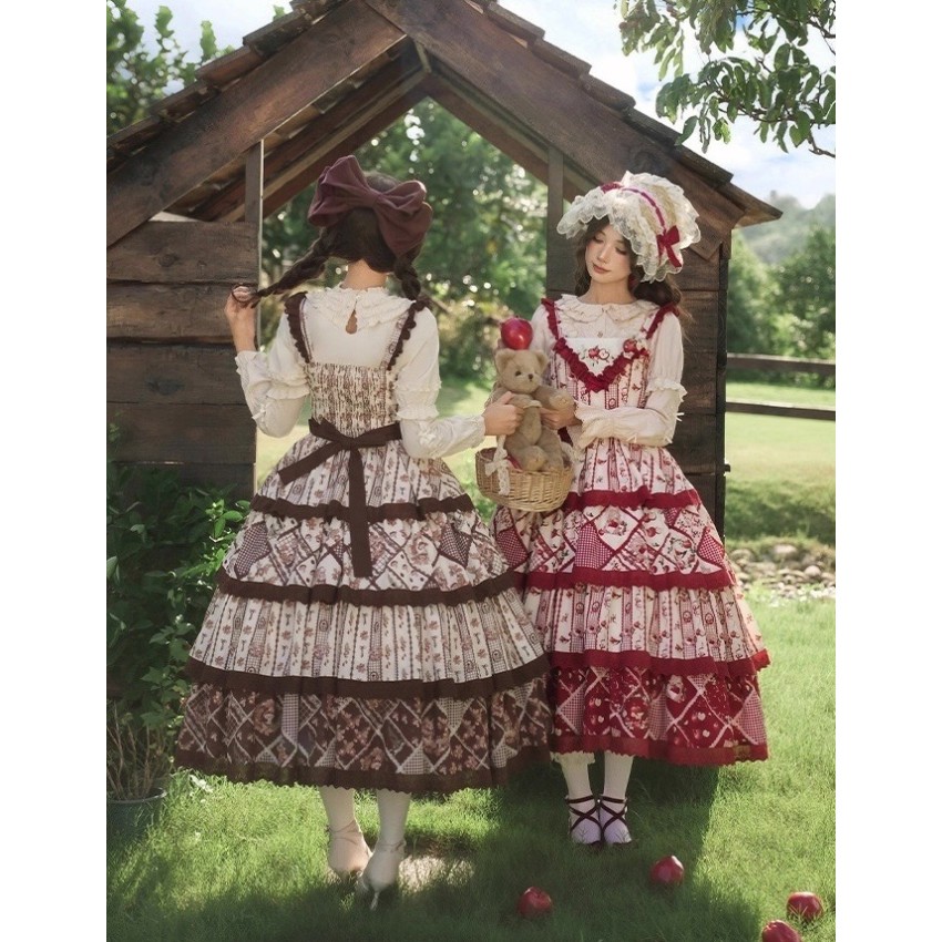 The larger end of Bust and Waist are the measurements when the back shirring is stretched(The smaller end are laid flat measurements of JSK without stretching the back shirring). It's not recommended to stretch the back shirring much in case of tight fitting(For your reference only).