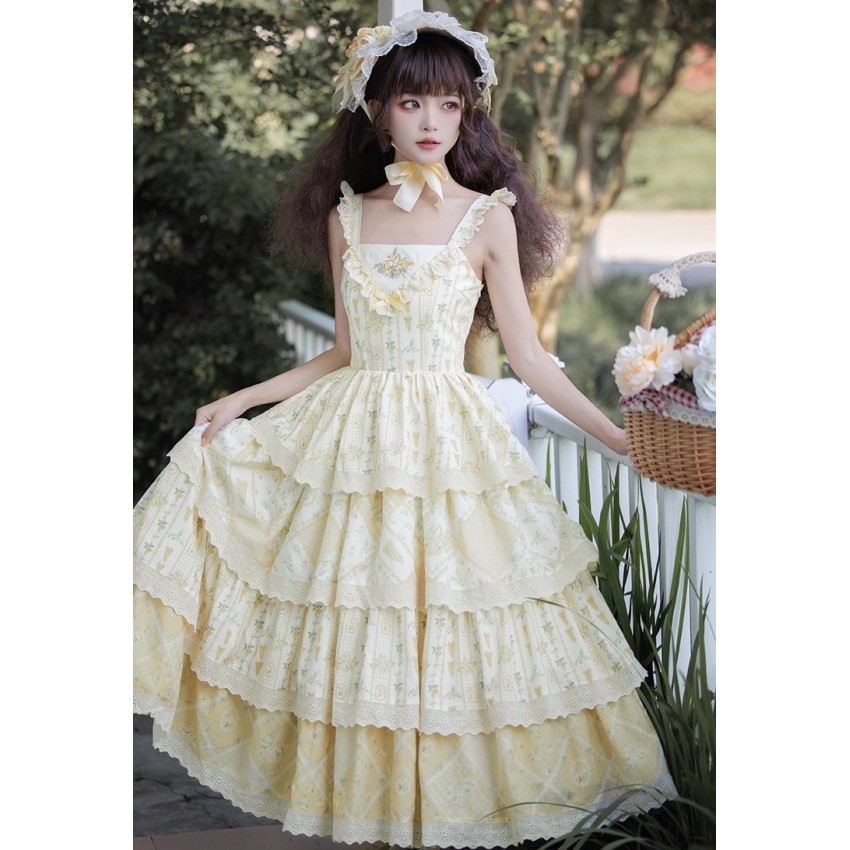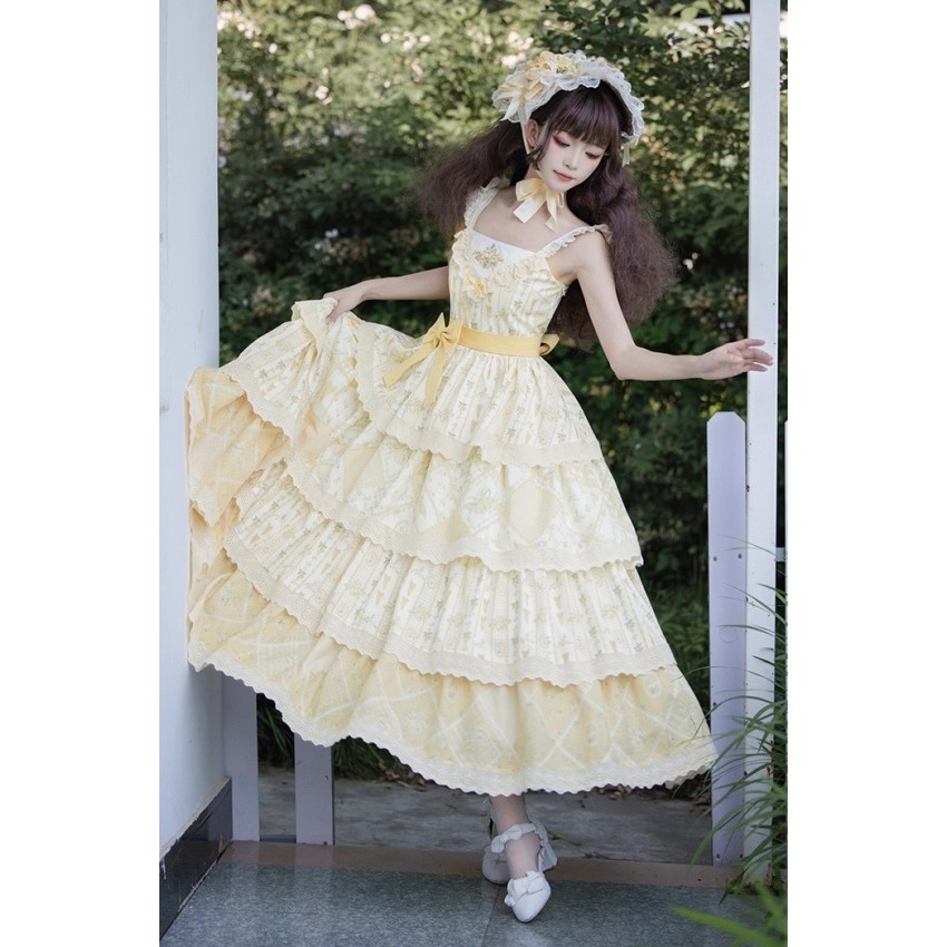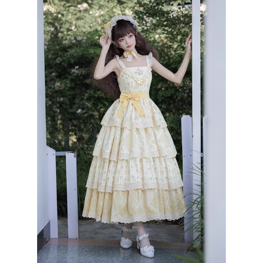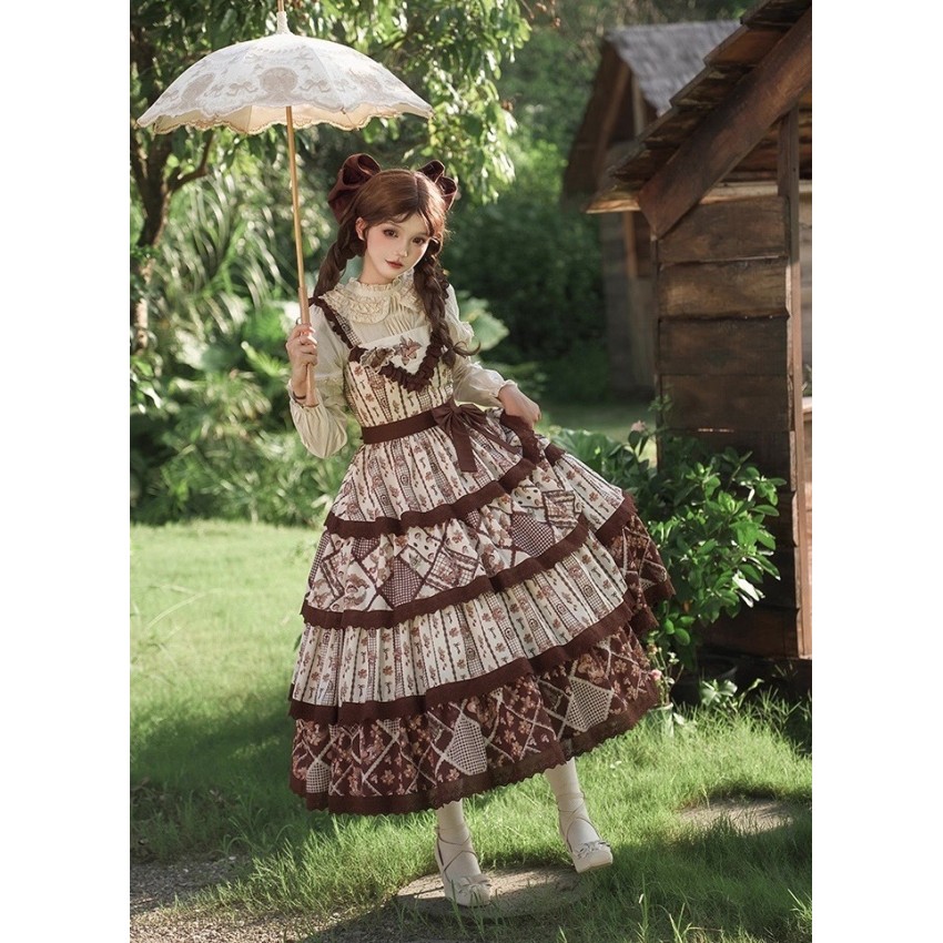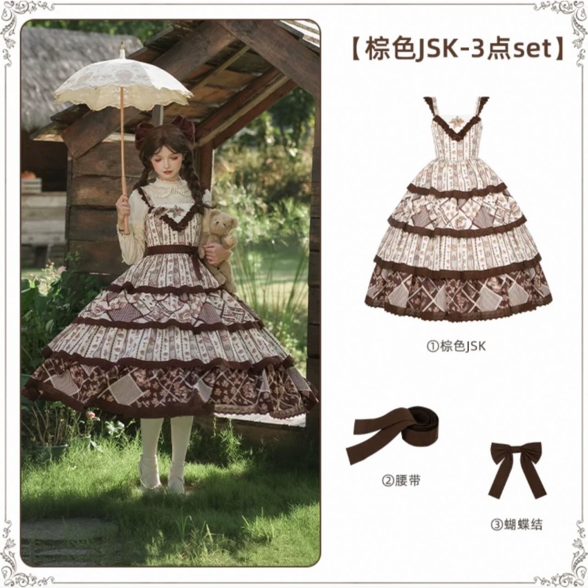 The larger end of Bust and Waist are the measurements when the back shirring is stretched(The smaller end are laid flat measurements of JSK without stretching the back shirring). It's not recommended to stretch the back shirring much in case of tight fitting(For your reference only).