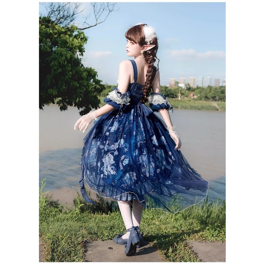 The smaller end of Bust and Waist are laid flat measurements of the JSK without stretching the back shirring(The larger end are the measurements when the back shirring is stretched). It's not recommended to stretch the back shirring or do not stretch much in case of tight fitting(For your reference only).*There may be a 1-3cm discrepancy due to manual measure*Colours may differ slightly from photos due to different computer monitors/calibrations