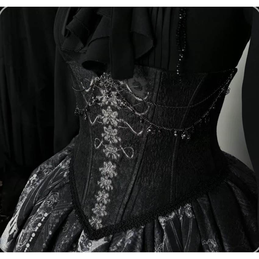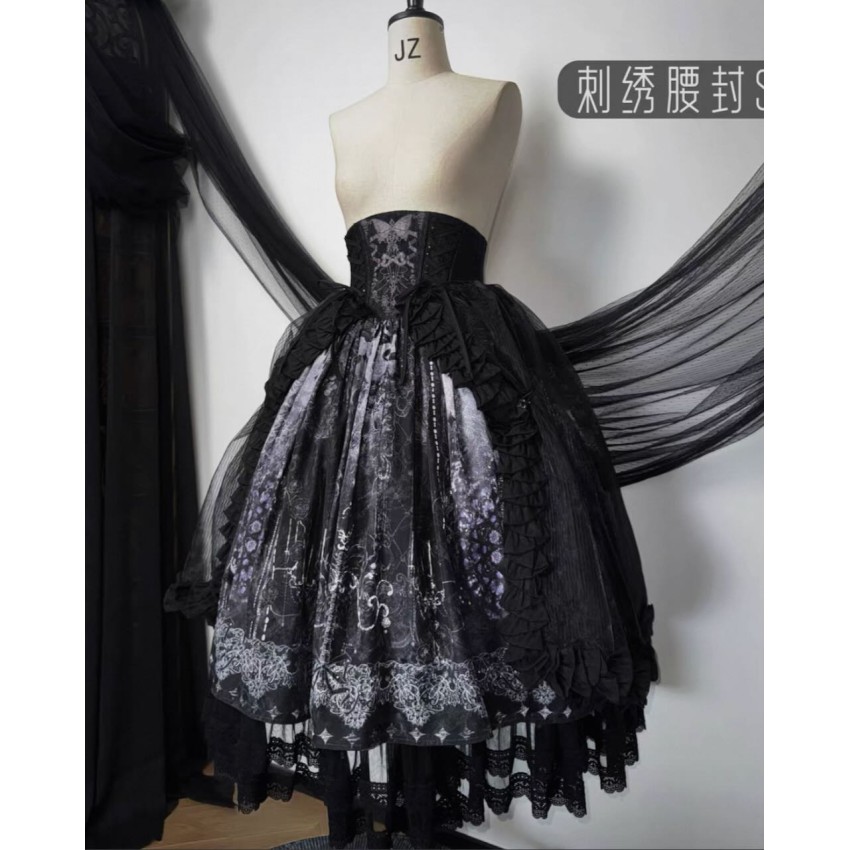 The larger end of Waist is the measurement when the back shirring is stretched(The smaller end are laid flat measurements of the Corset Skirt without stretching the back shirring).