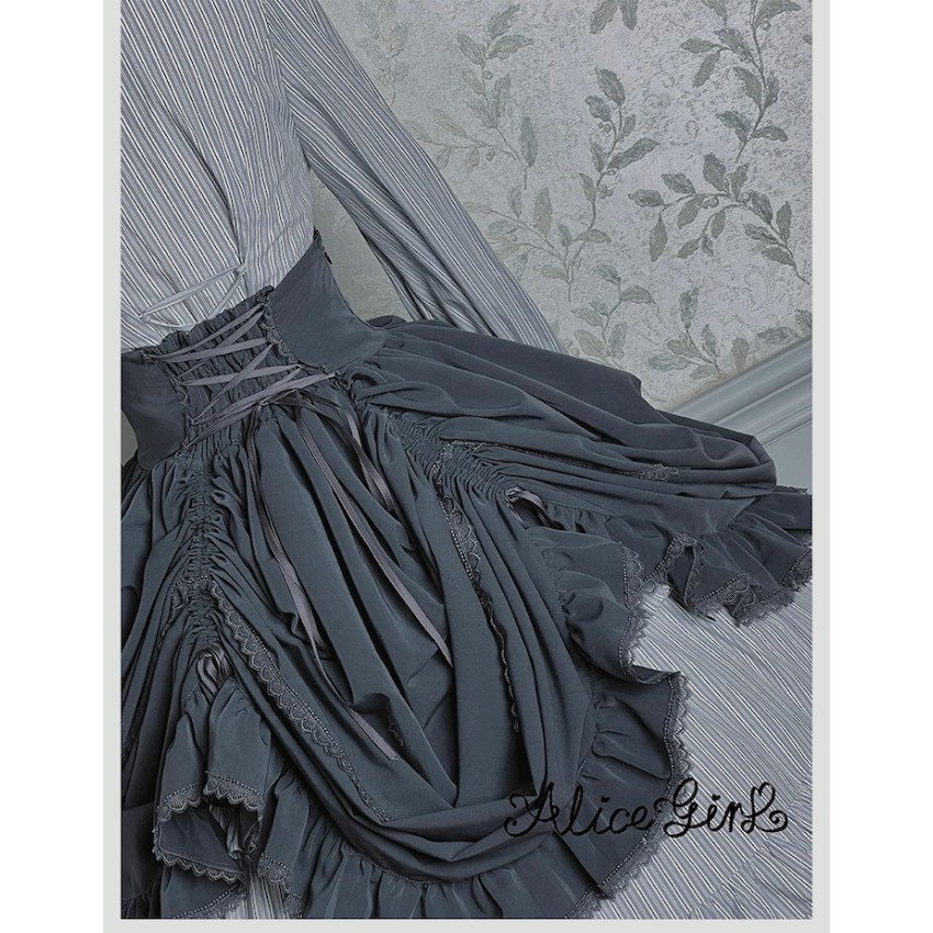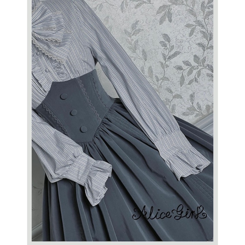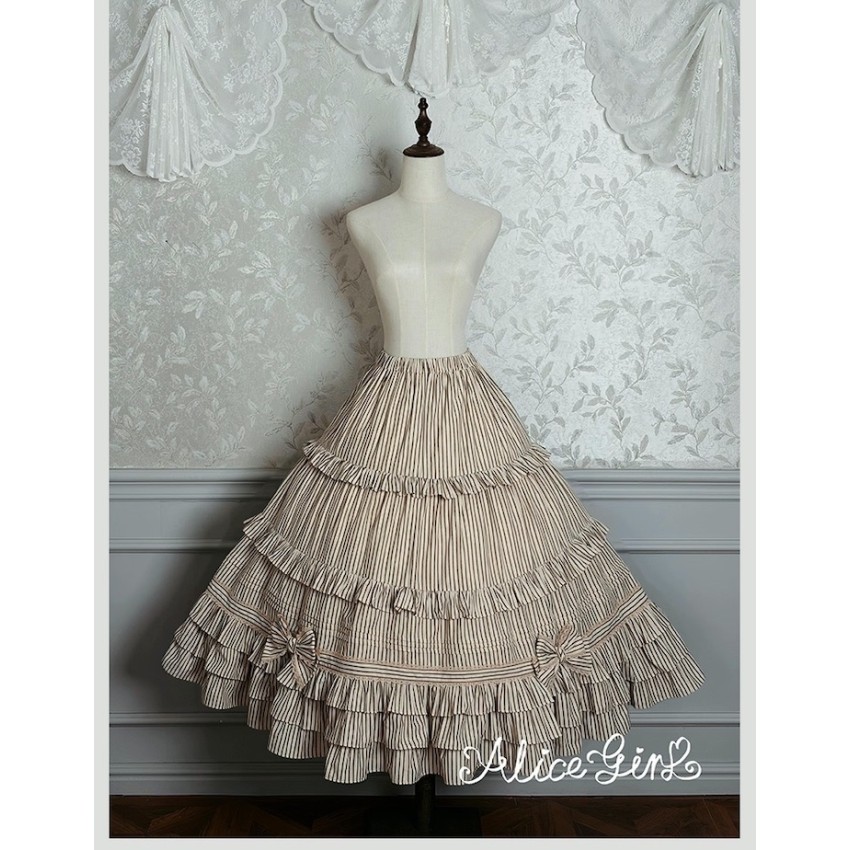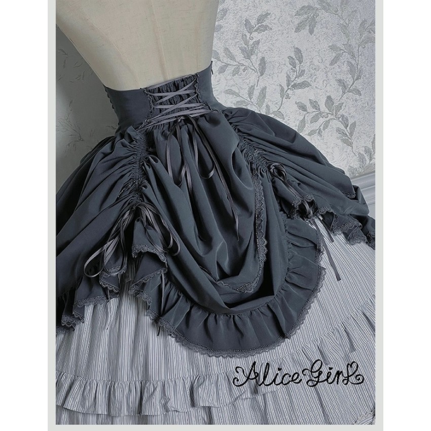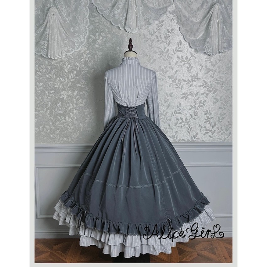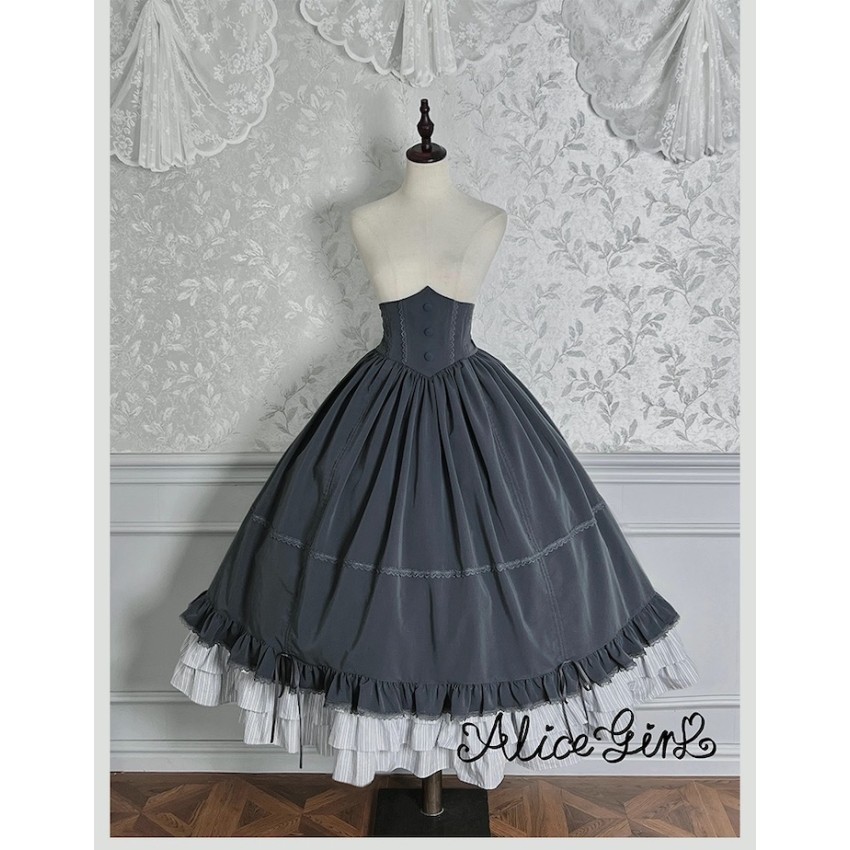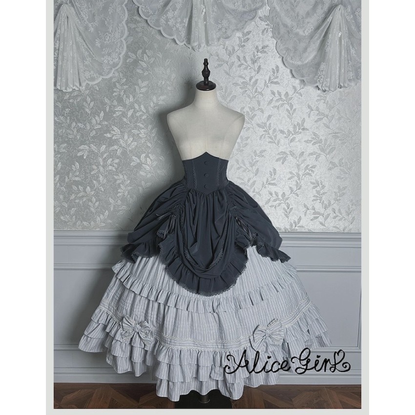 Material: Twill fabric with cotton lining(Striped Skirt), striped cotton fabric(Corset Overskirt)Striped Skirt Garment Measurements(CM)(Custom Size not available)