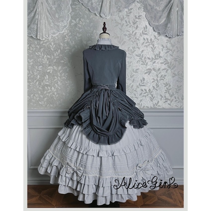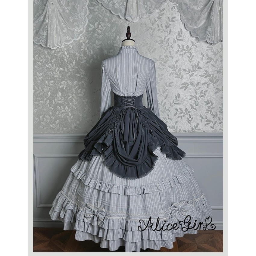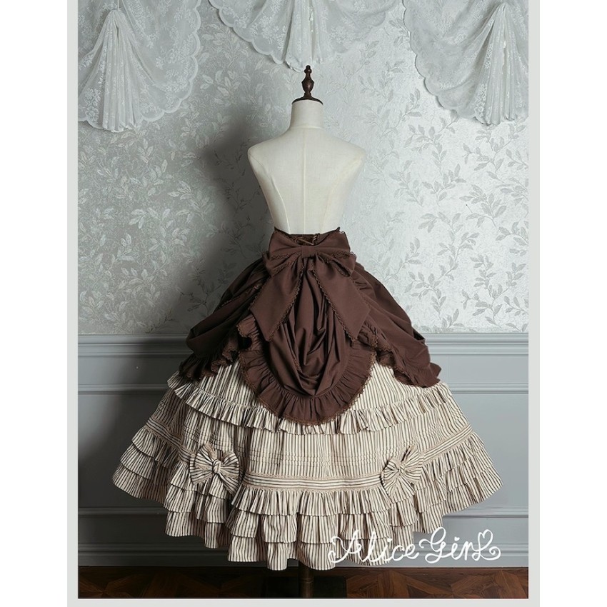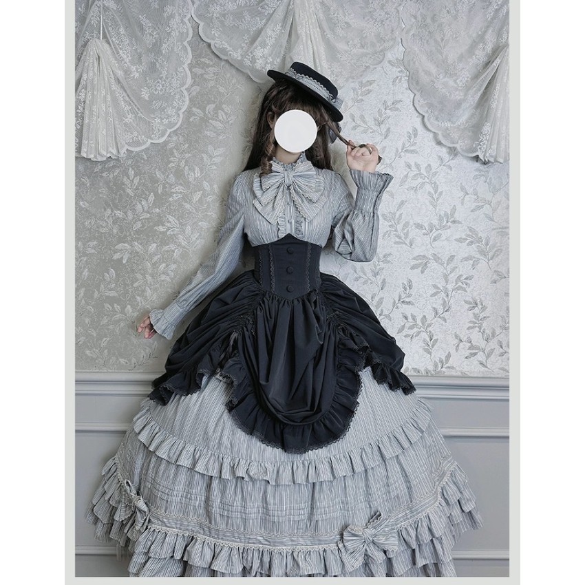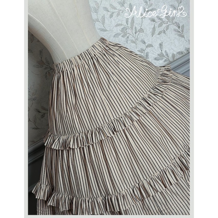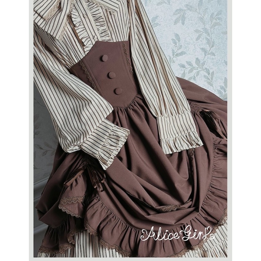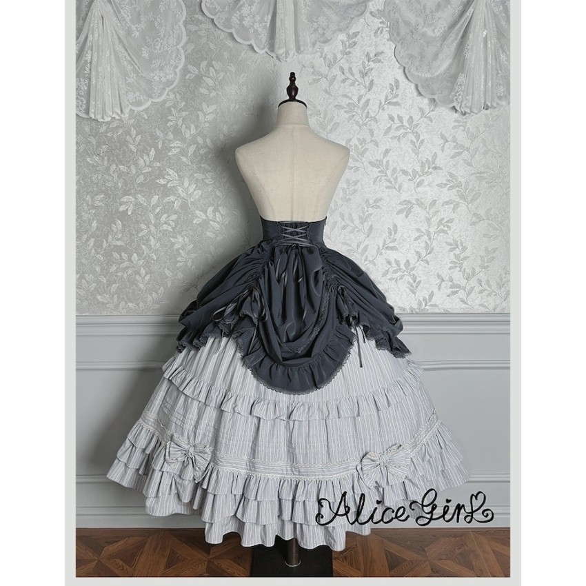 Material: Twill fabric with cotton lining(Striped Skirt), striped cotton fabric(Corset Overskirt)Striped Skirt Garment Measurements(CM)(Custom Size not available)