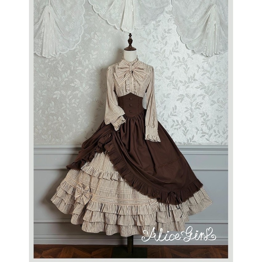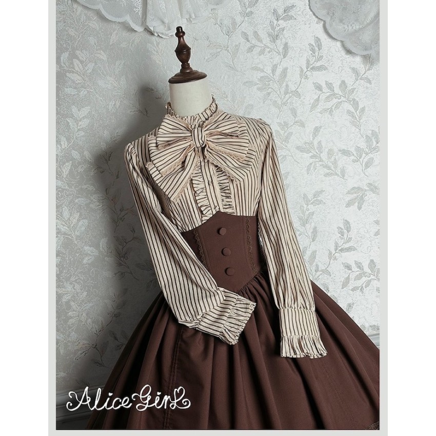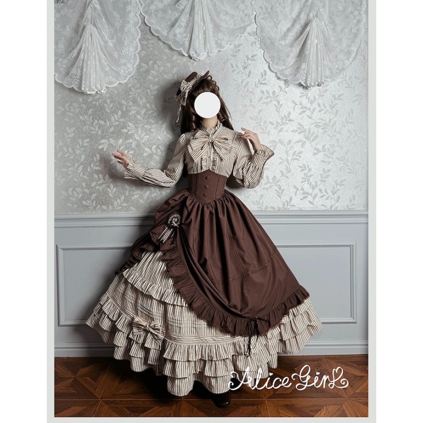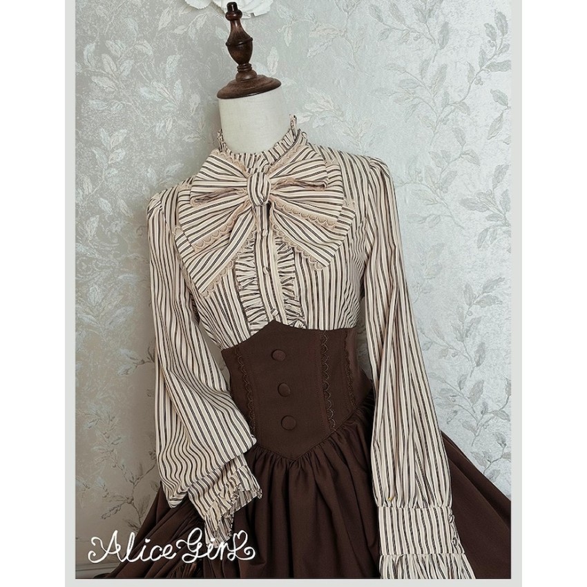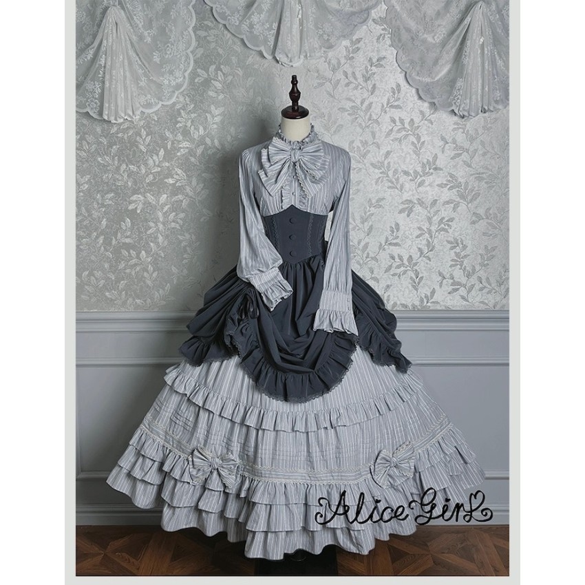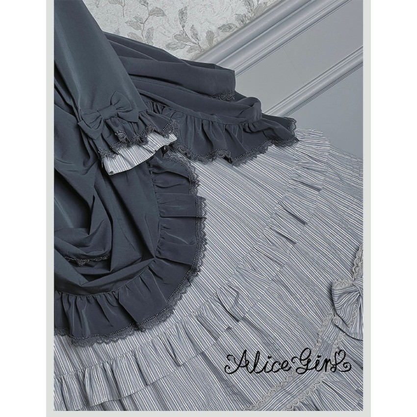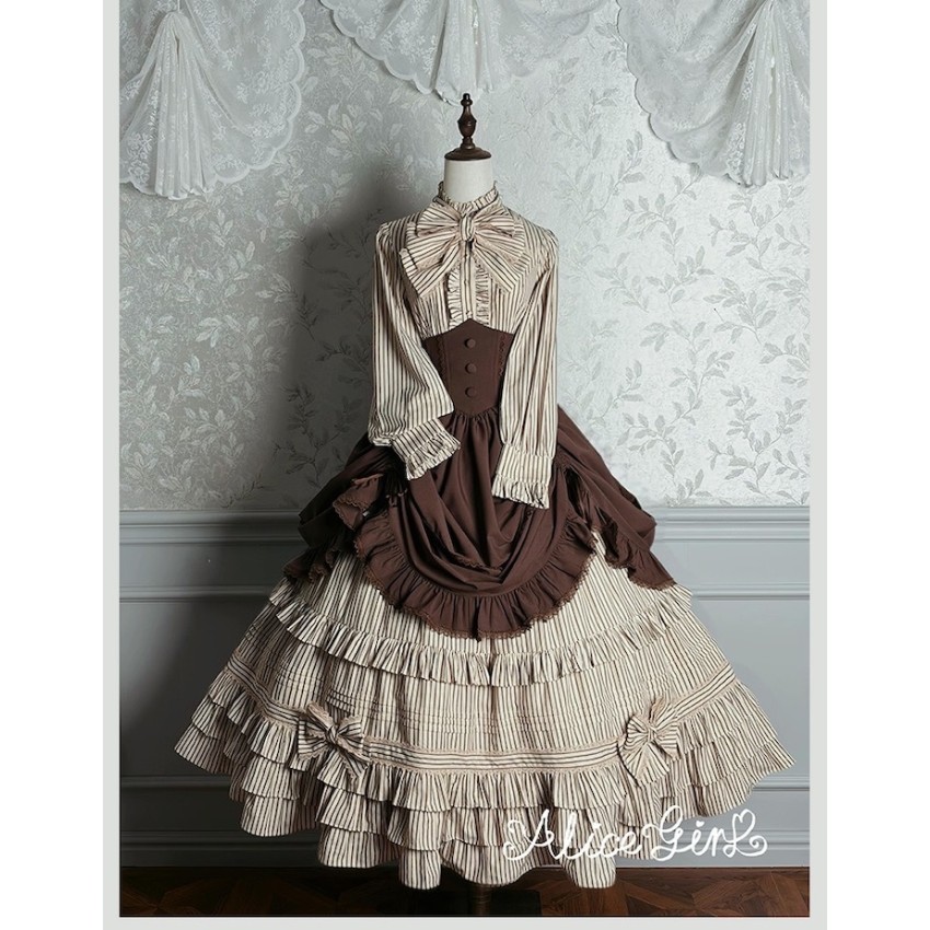 Material: Twill fabric with cotton lining(Striped Skirt), striped cotton fabric(Corset Overskirt)Striped Skirt Garment Measurements(CM)(Custom Size not available)