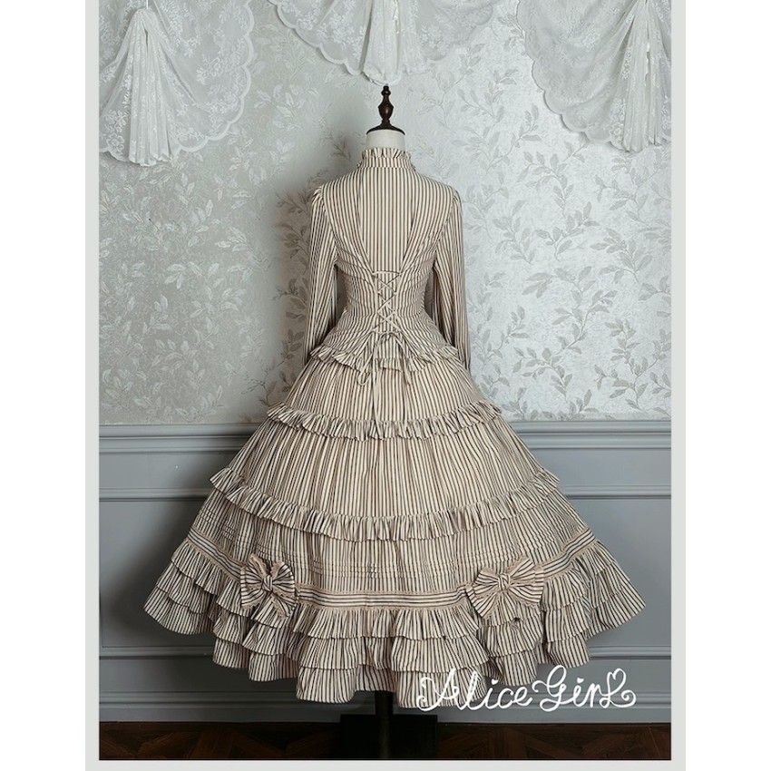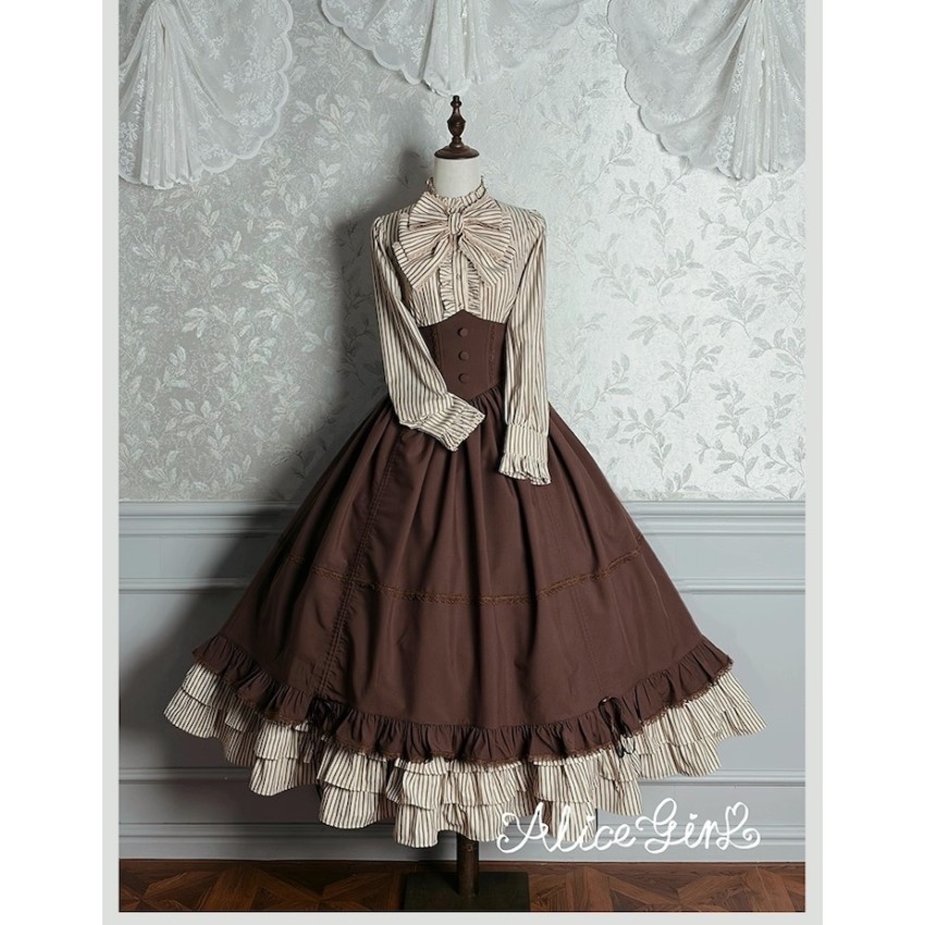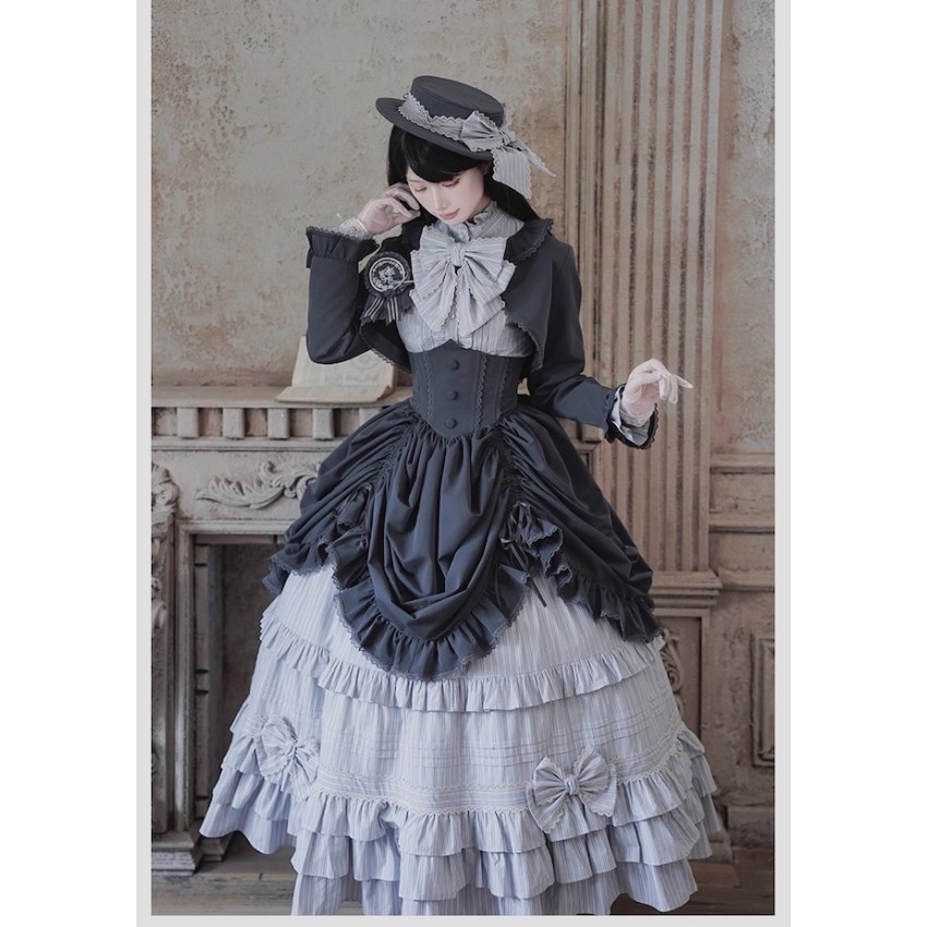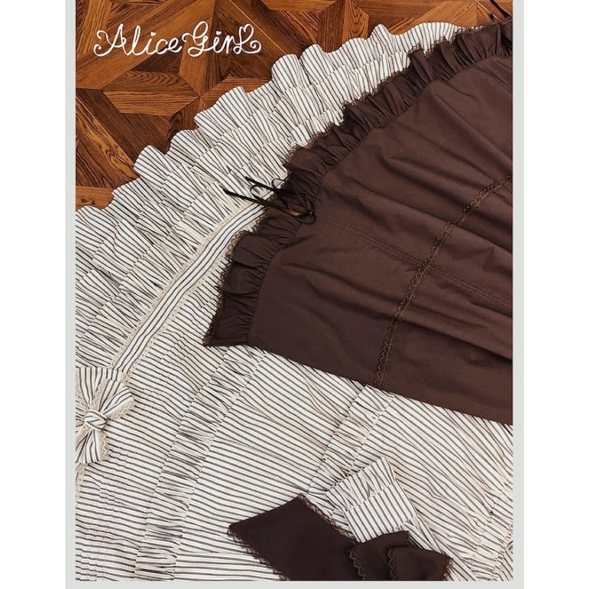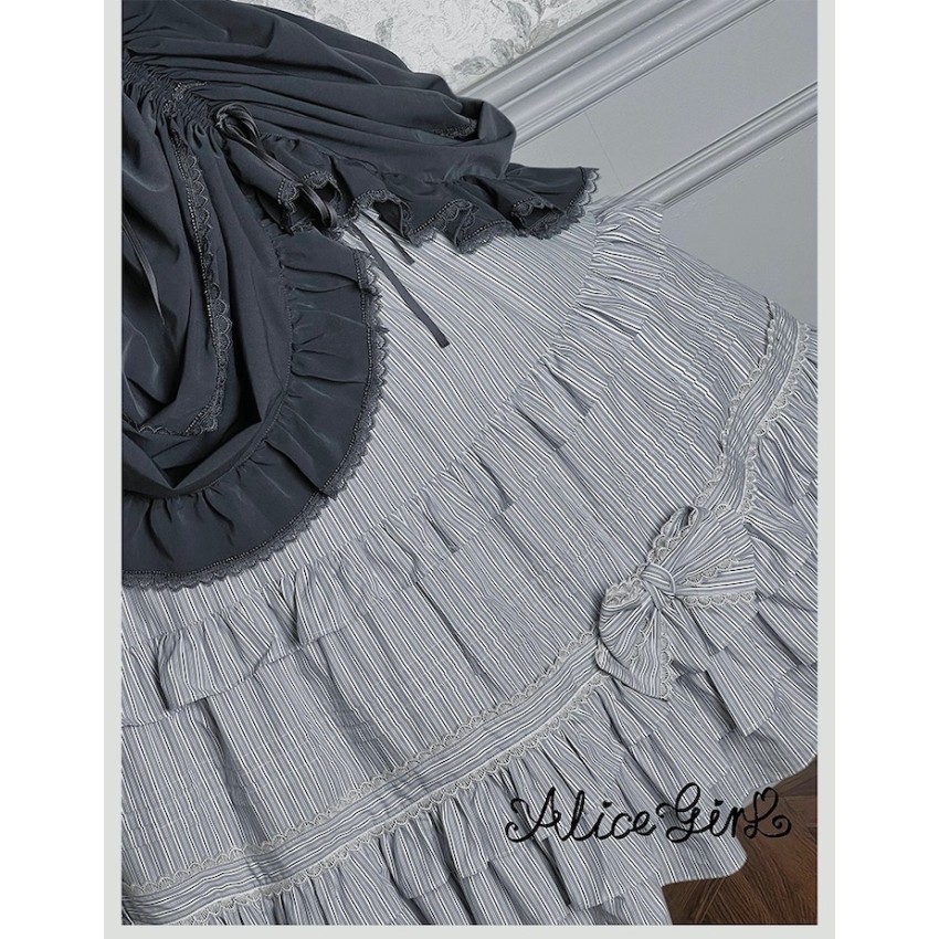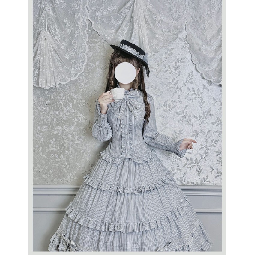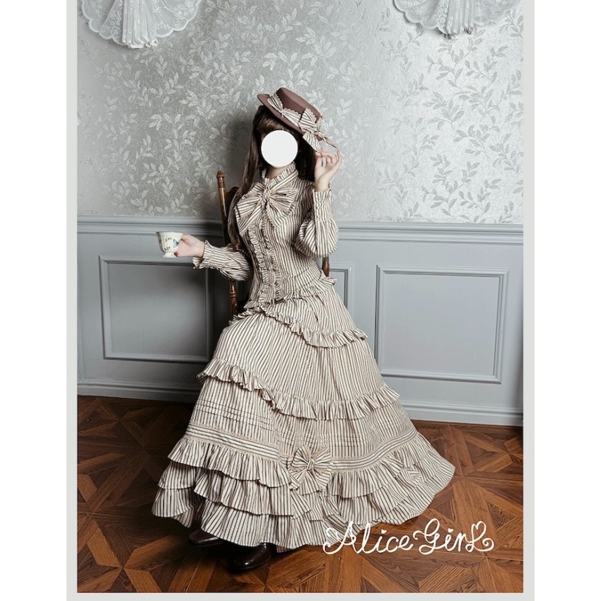 Material: Twill fabric with cotton lining(Striped Skirt), striped cotton fabric(Corset Overskirt)Striped Skirt Garment Measurements(CM)(Custom Size not available)