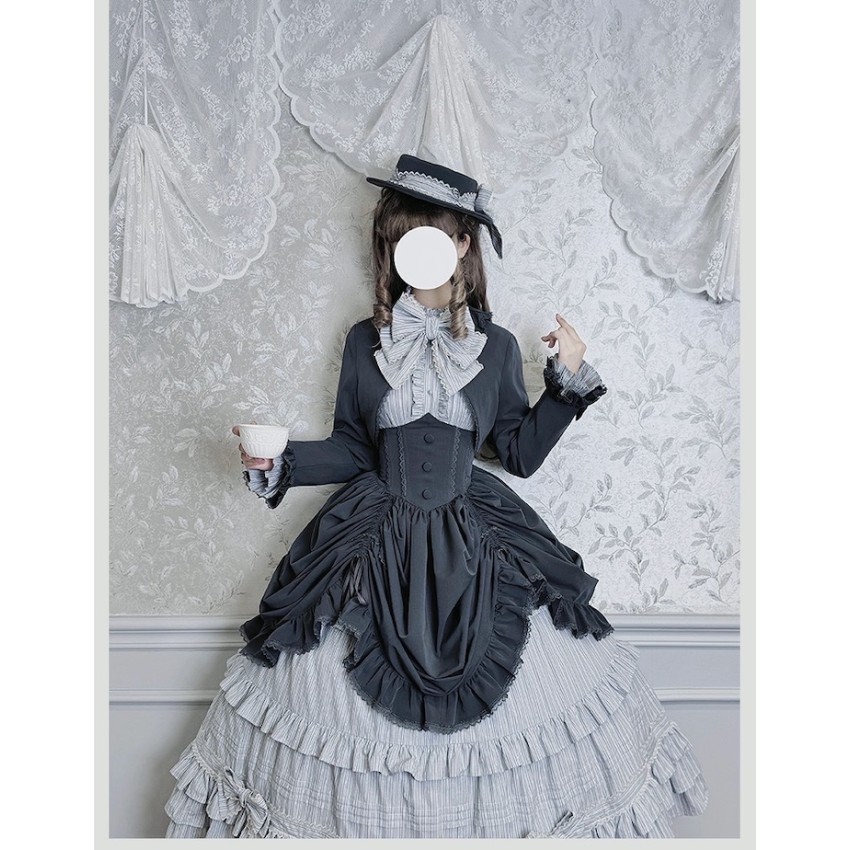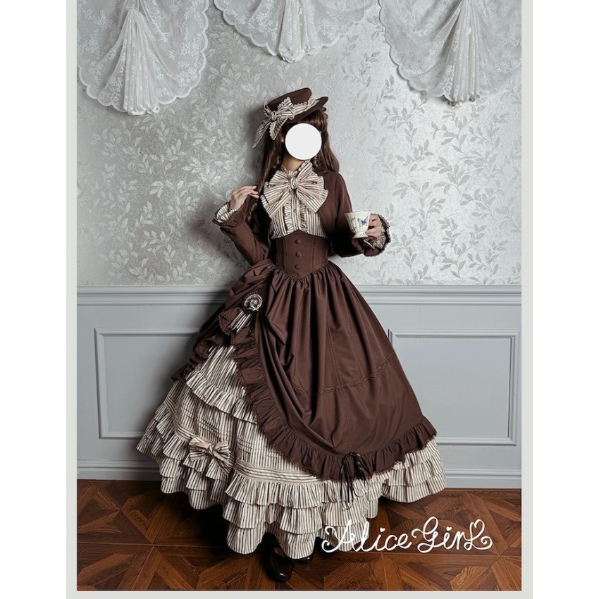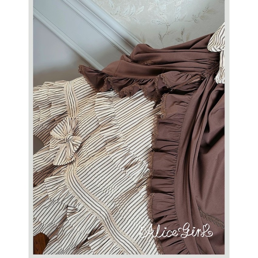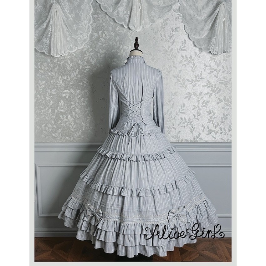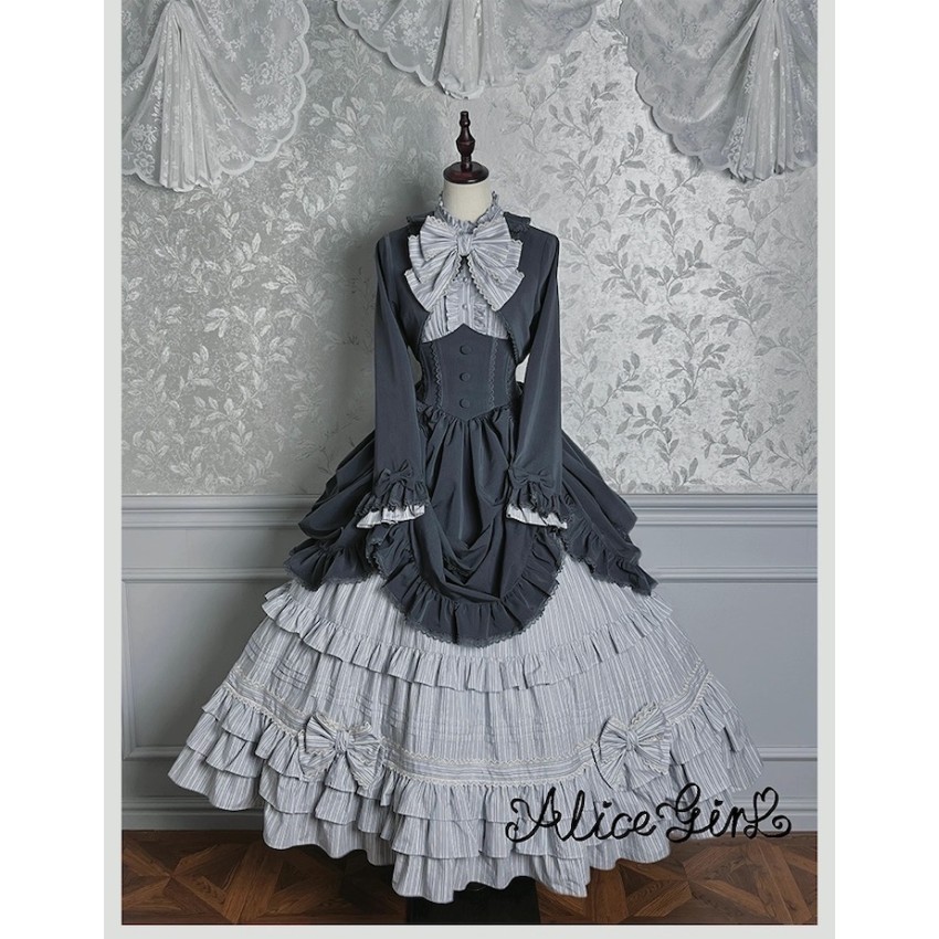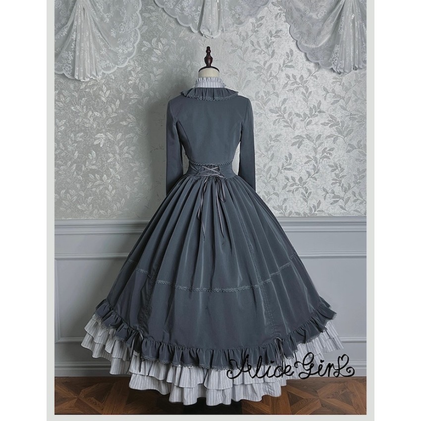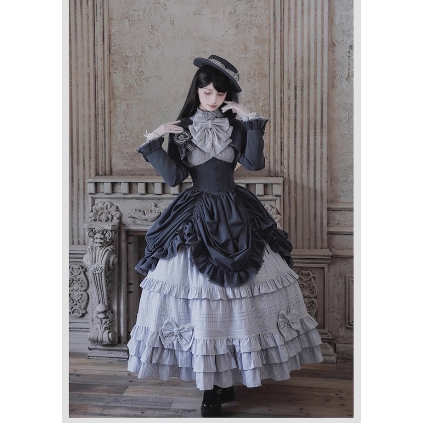 Material: Twill fabric with cotton lining(Striped Skirt), striped cotton fabric(Corset Overskirt)Striped Skirt Garment Measurements(CM)(Custom Size not available)