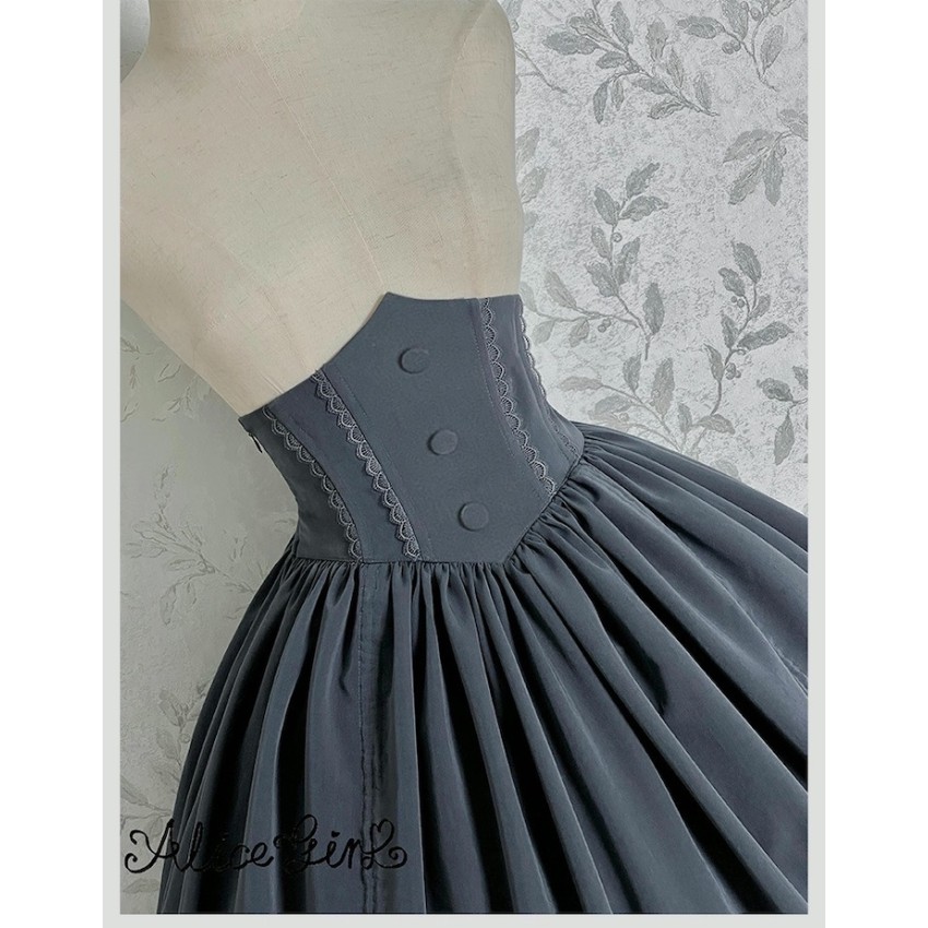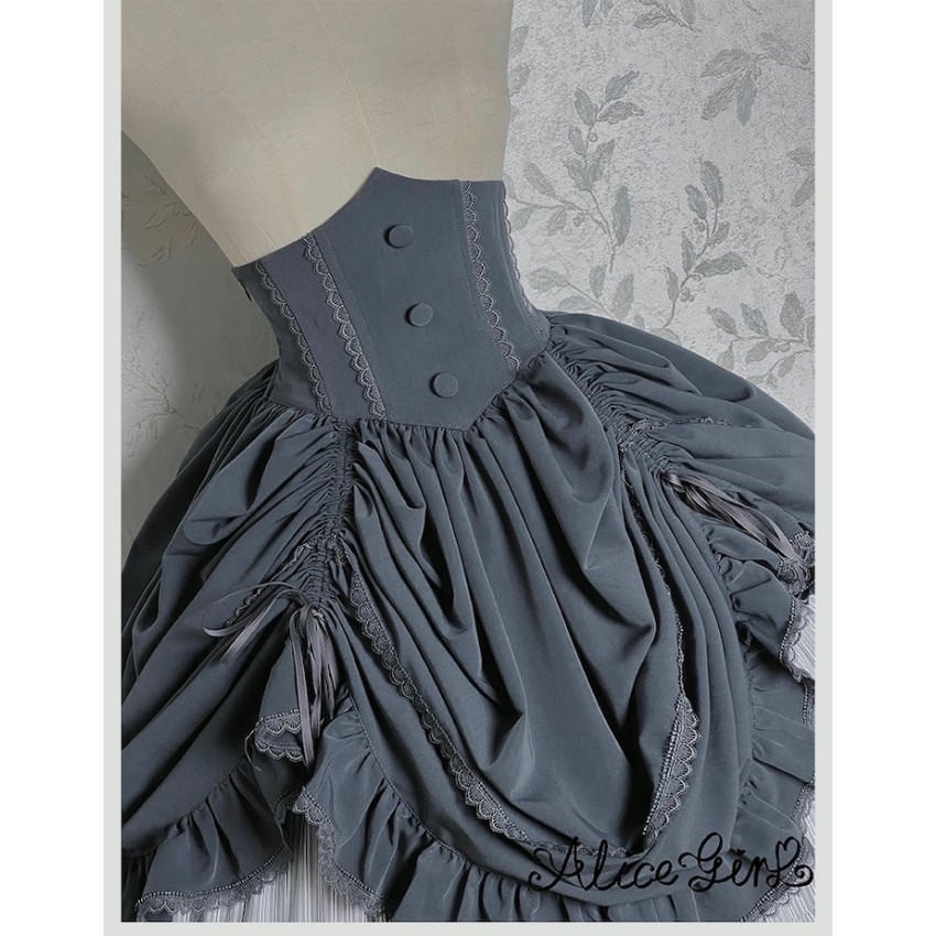 The Corset Overskirt is shirred on the back. It's designed to be a slim fit. It's recommended that your waist be at least 3cm smaller than the listed Waist measurement(For your reference only)