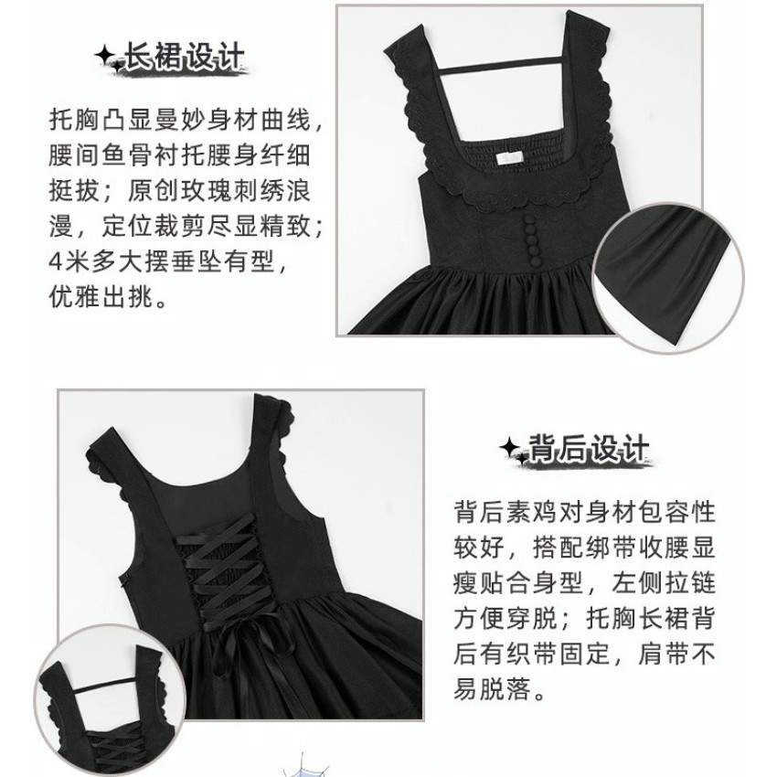 The larger end of Bust and Waist are the measurements when the back shirring is stretched(The smaller end are laid flat measurements of the JSK without stretching the back shirring). It's not recommended to stretch the back shirring much in case of tight fitting(For your reference only).