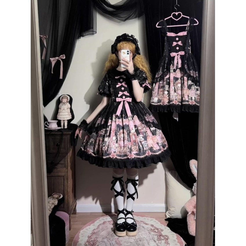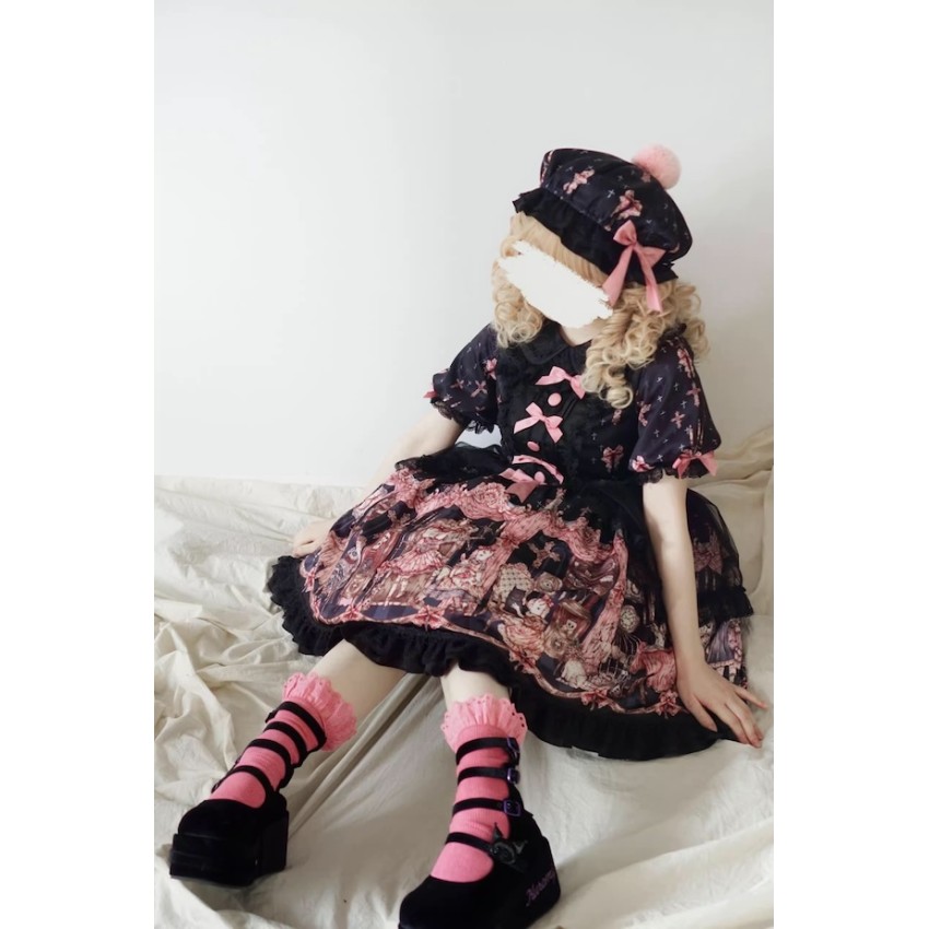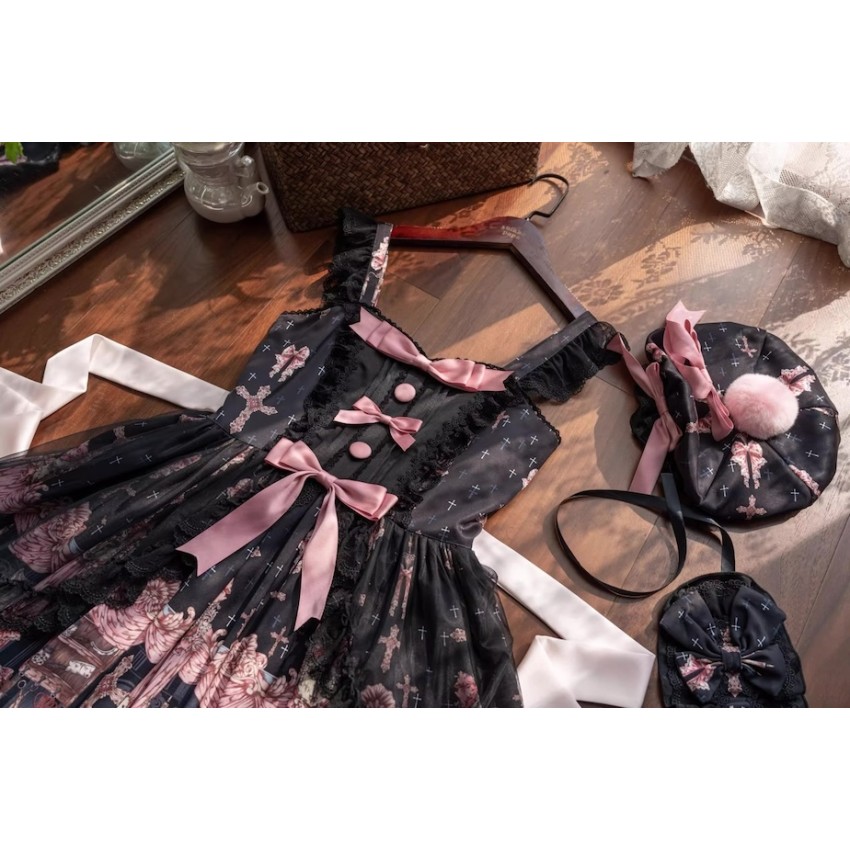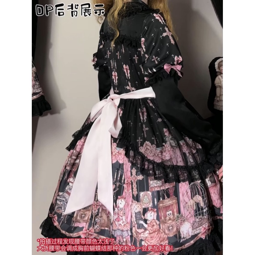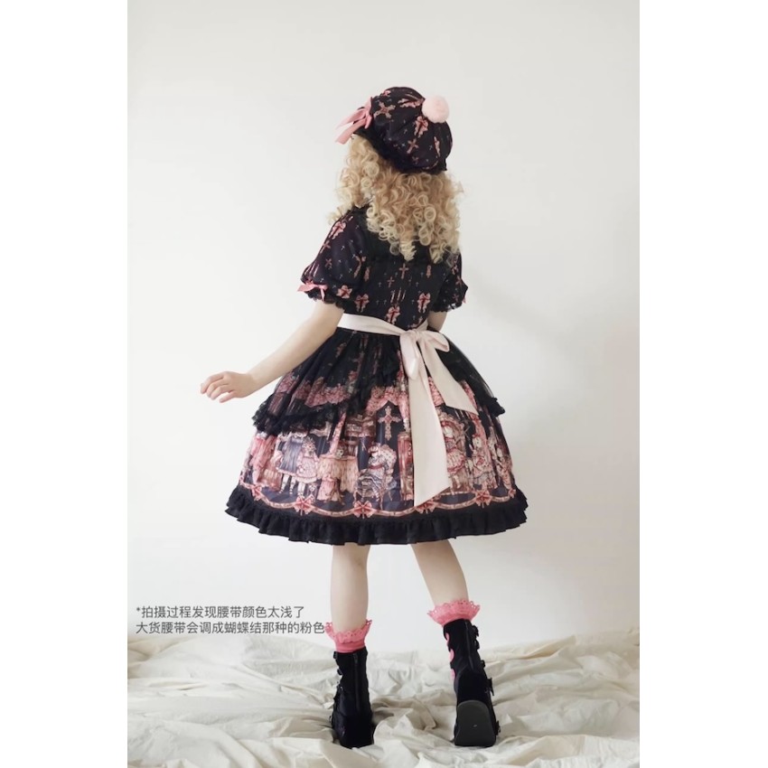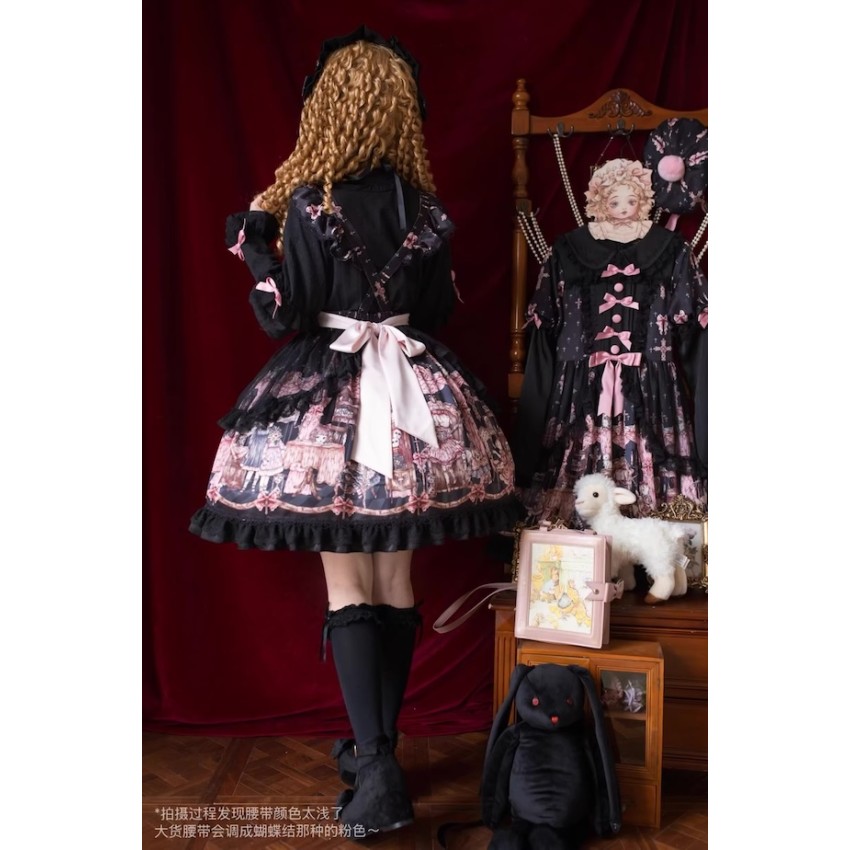 The Waist Belt on the sample Skirt/JSK/OP is too light. The actual waist belt will be in a Pink that's the same/similar as the bows.