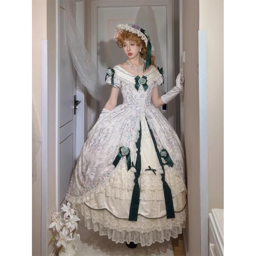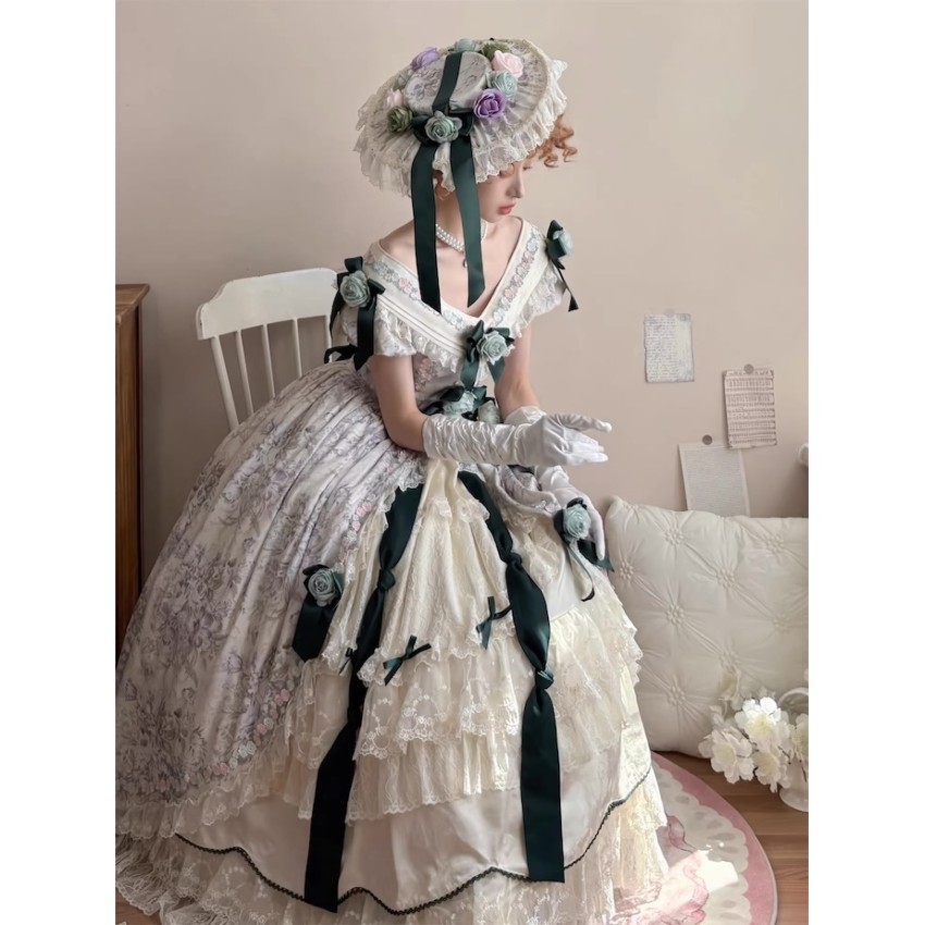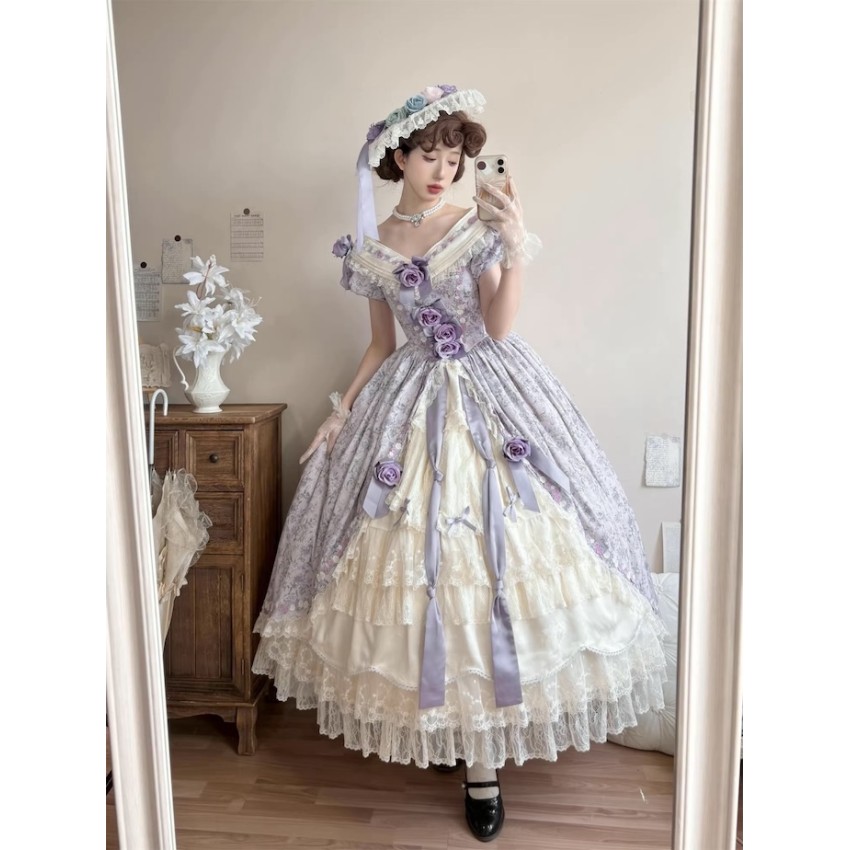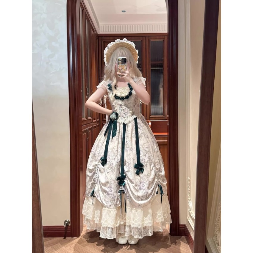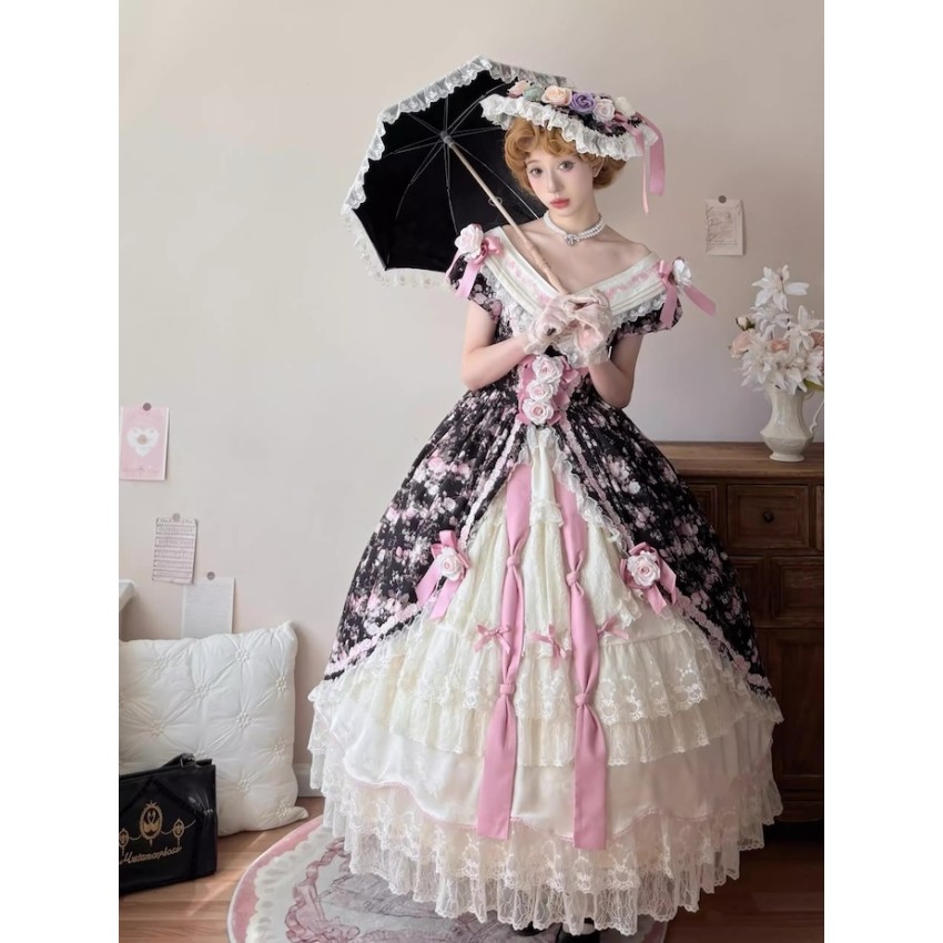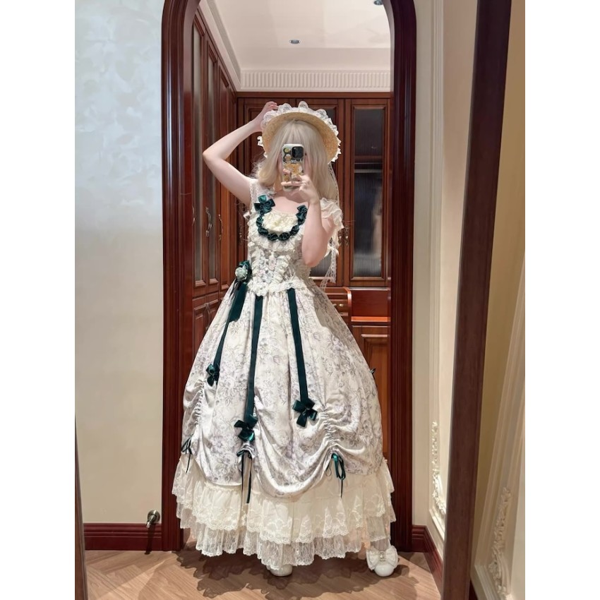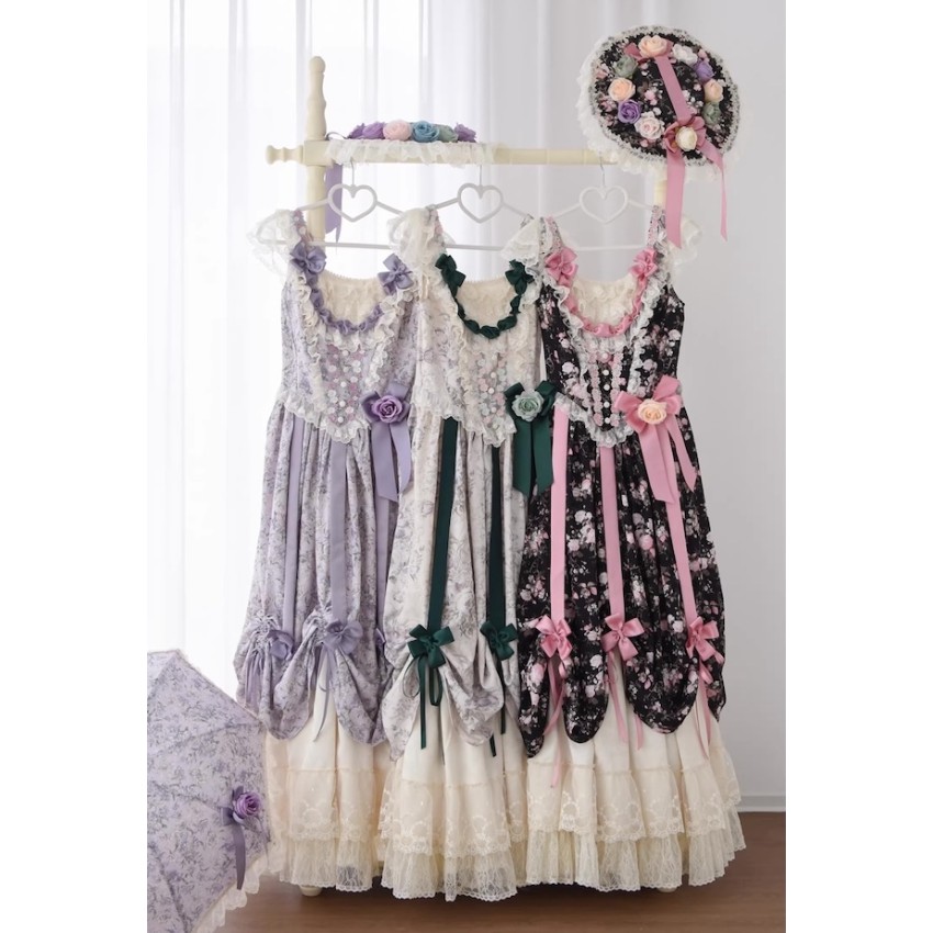 This is the full payment of the items WITHOUT shipping cost. You will have to pay the shipping cost after the items are released(We will inform you to pay the shipping then)If you prefer to put down a deposit for now(50% exclusive of shipping cost and pay the remainder after they are released) or do payment plans, please send us an email and order it through email like before.- One Piece: There are 4 plastic fishbones on the torso. Outerlayer is print fabric and the inner layer is cream fabric. There are several layers of ruffles on the cream layer. There are waist ties on the OP. The OP includes 8 flower clips+2 detachable ribbons+none detachable waist ties.- JSK: There are 2 plastic fishbones on the torso(front). Shirring on the back with lacing up. There are built-in drawstring that you can adjust to pull up the hem. The JSK does not have waist ties. The JSK includes a flower clip+5 detachable ribbons.Closing Date: 1st/Feb/2026Estimated Release Time: Apr/2026