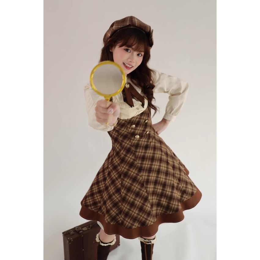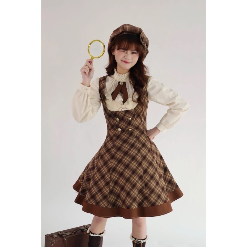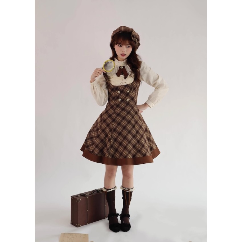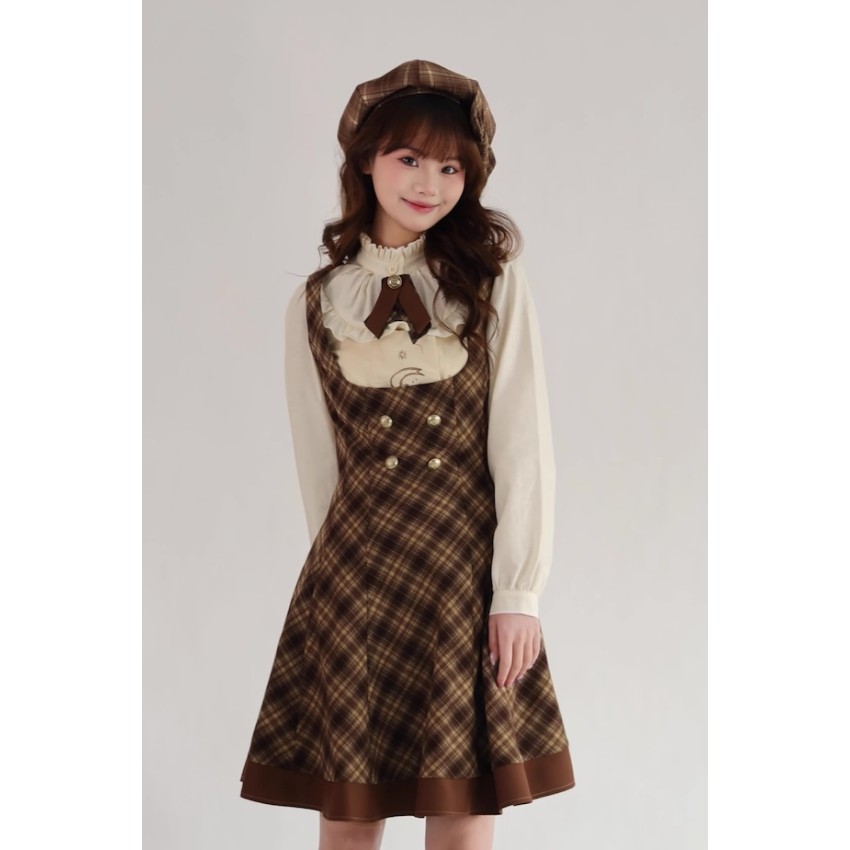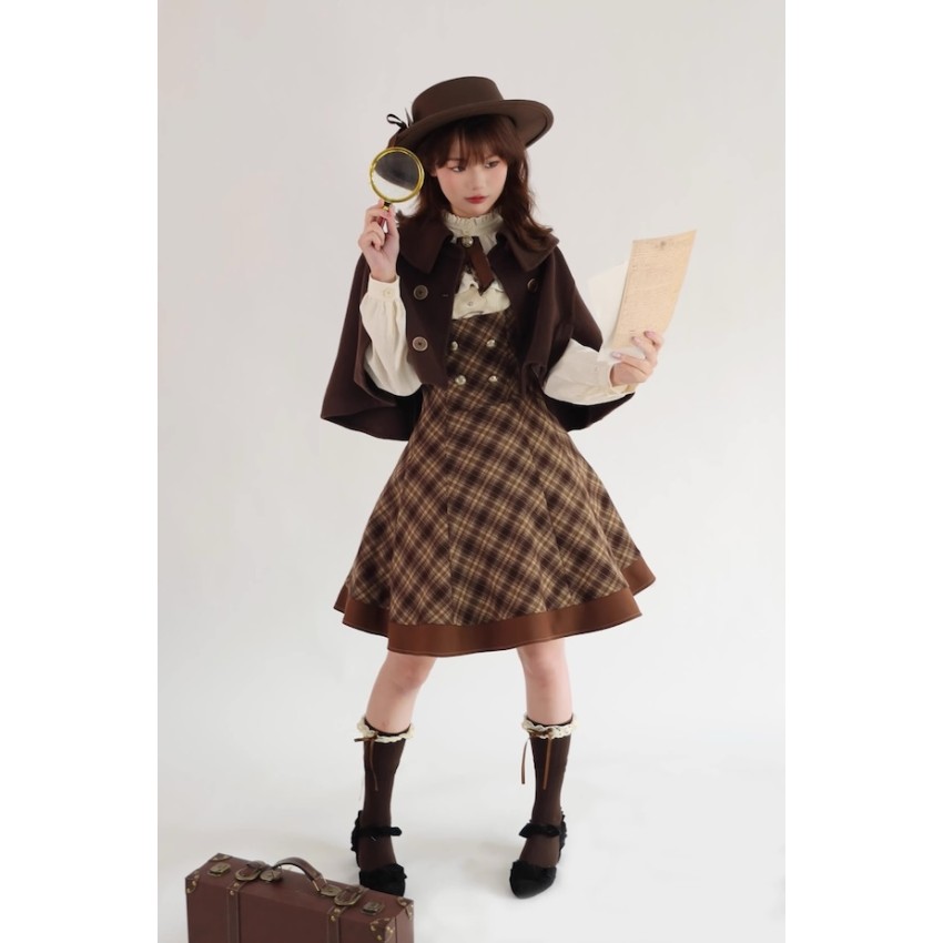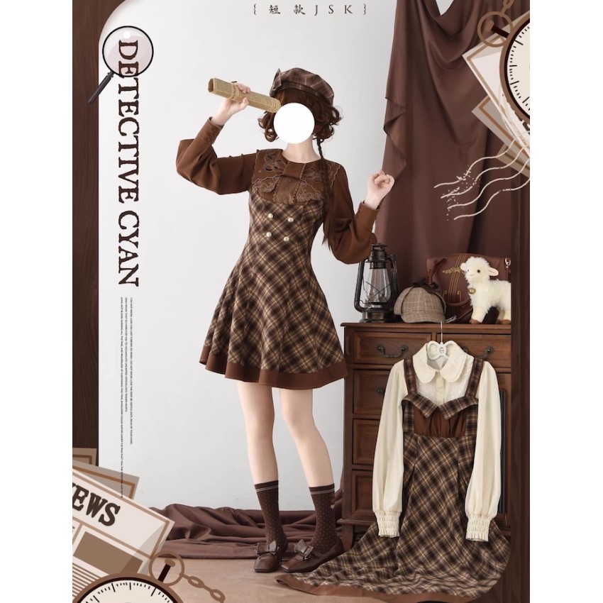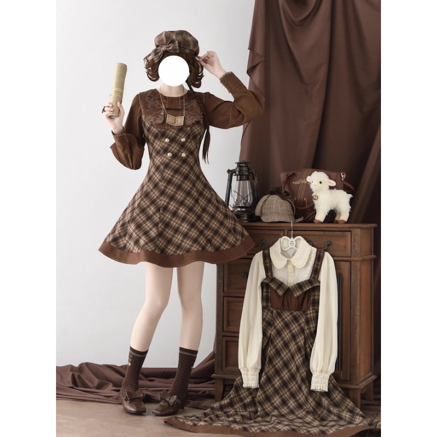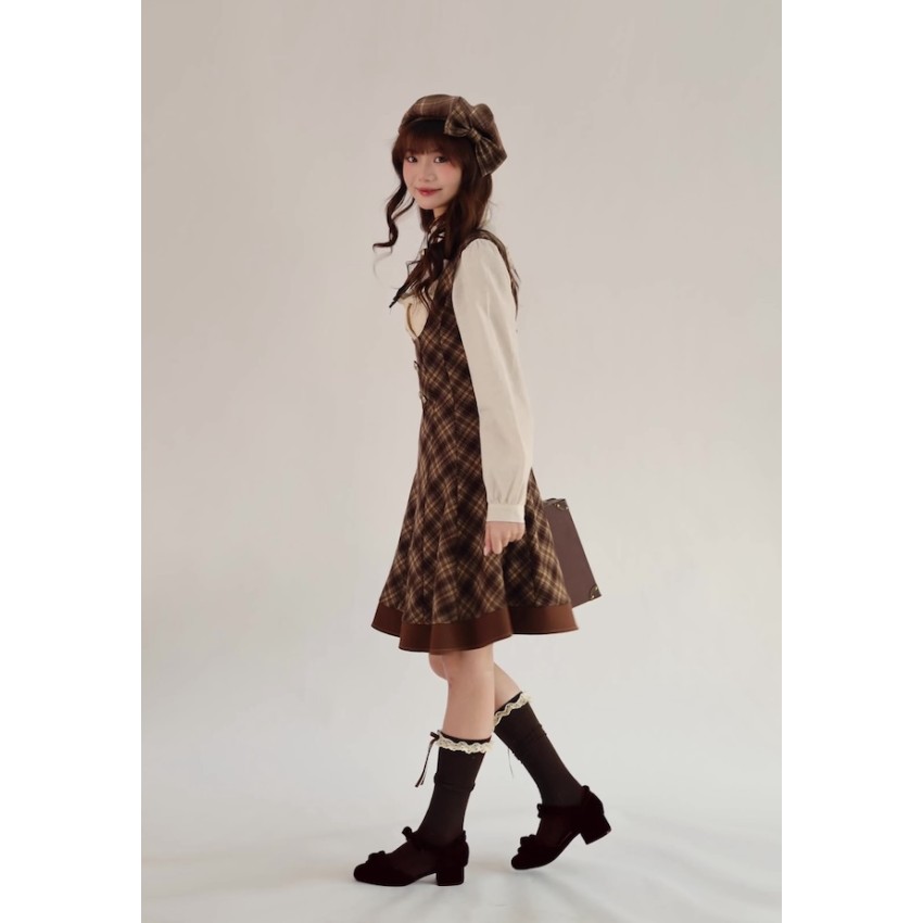 Material: Plaid fabric combined with brown TR fabric.Garment Measurements(CM)(Custom Size not available)