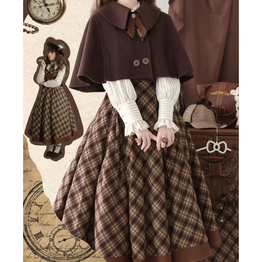 Material: Plaid fabric combined with brown TR fabric.Garment Measurements(CM)(Custom Size not available)