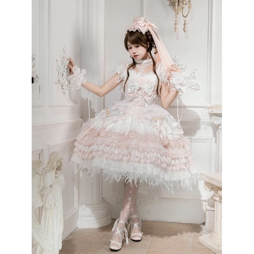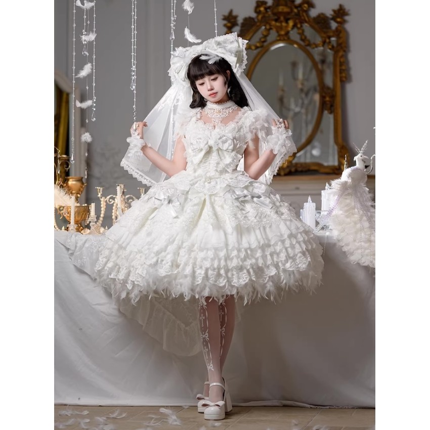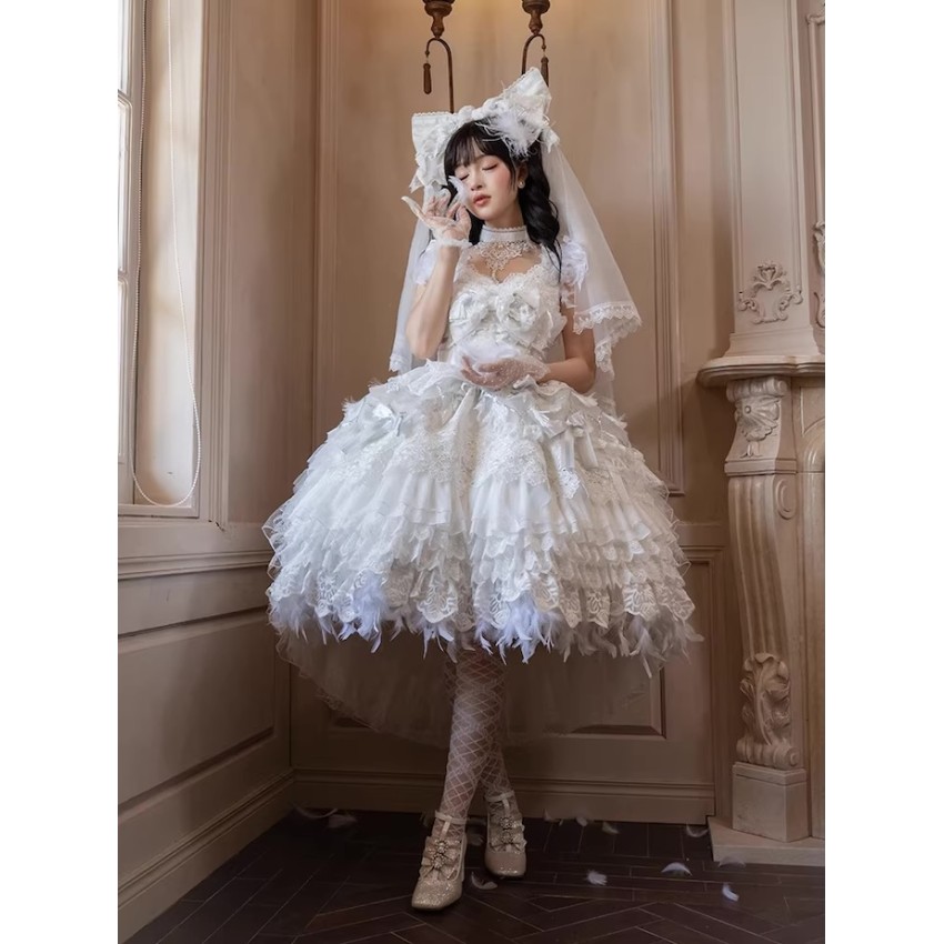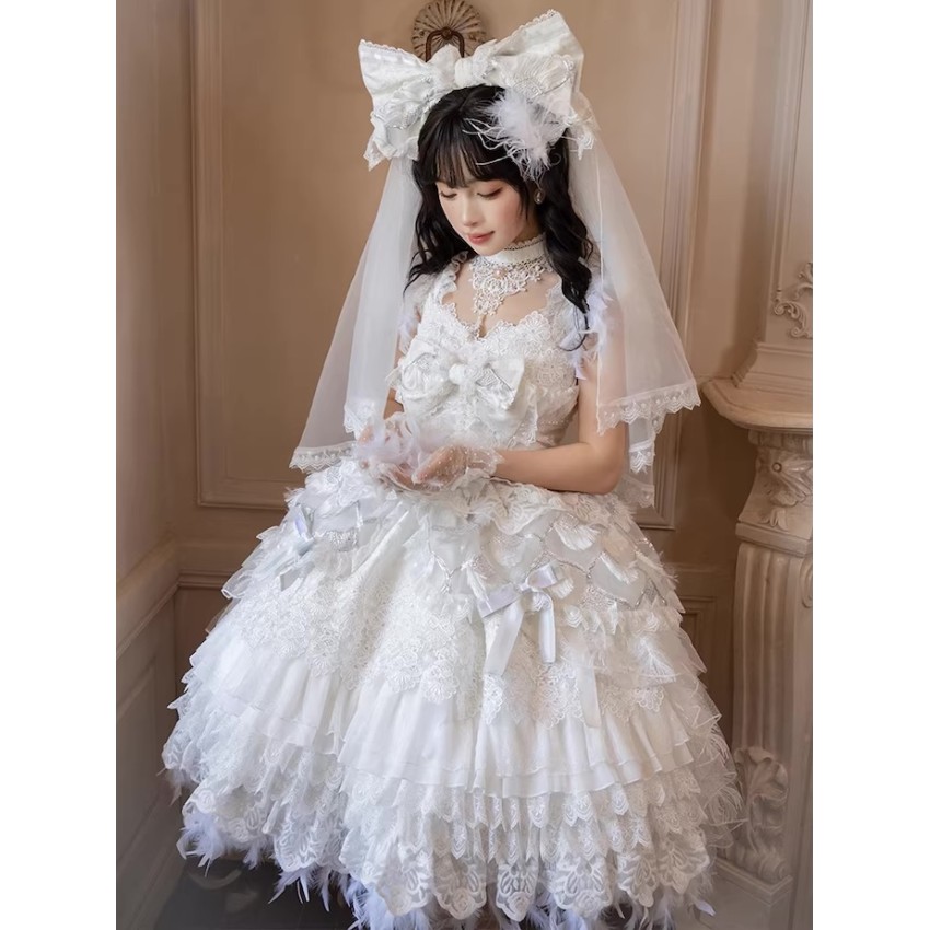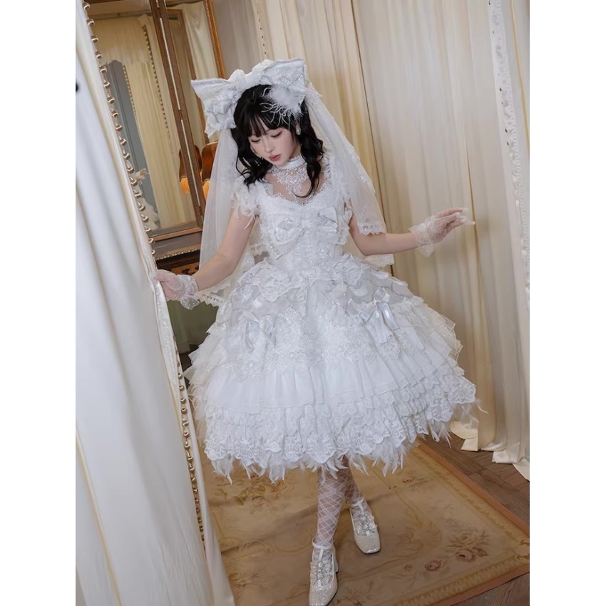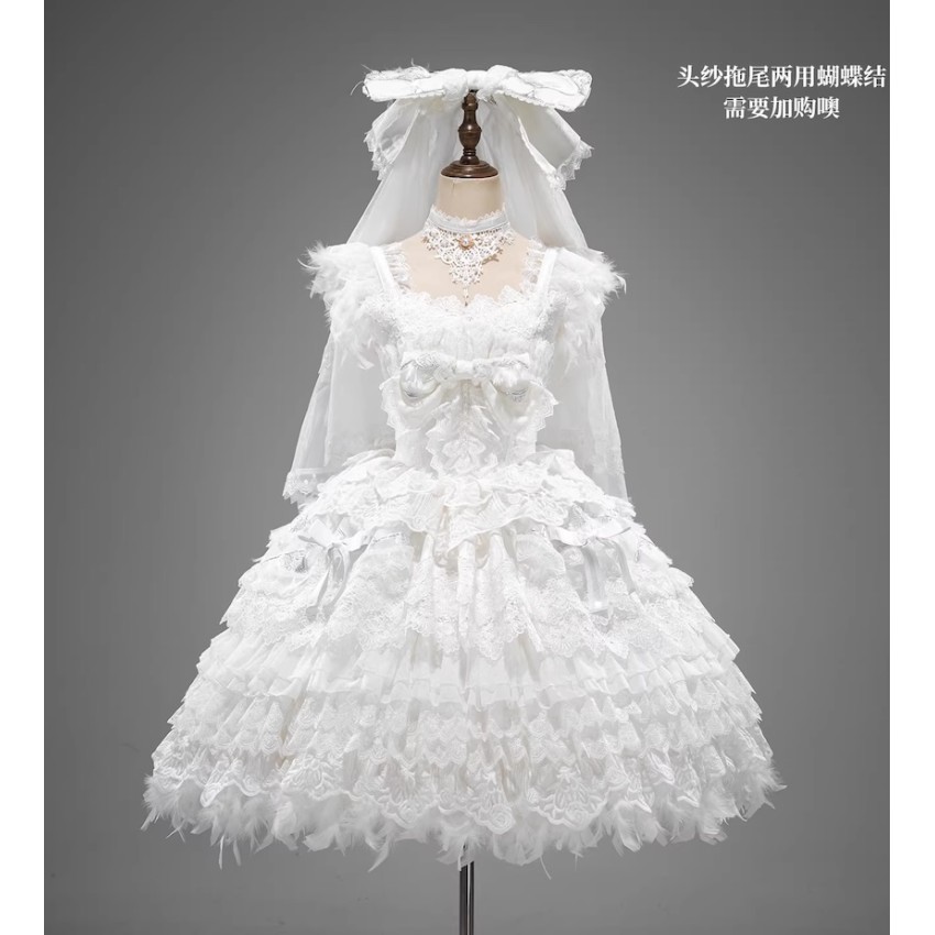 This is the full payment of the items WITHOUT shipping cost. You will have to pay the shipping cost after the items are released(We will inform you to pay the shipping then).If you prefer to put down a deposit for now(50% exclusive of shipping cost and pay the remainder after they are released) or do payment plans, please send us an email and order it through email like before.- The JSK includes a Choker. The fearther hem is detachable.- The Large Back Bow with Veil and Headbow with Veil are the same item. It can be used either way.Closing Date: 25th/Jan/2026Estimated Release Time: May-Aug/2026(They will be released in batches with the first batch being released in May/2026)