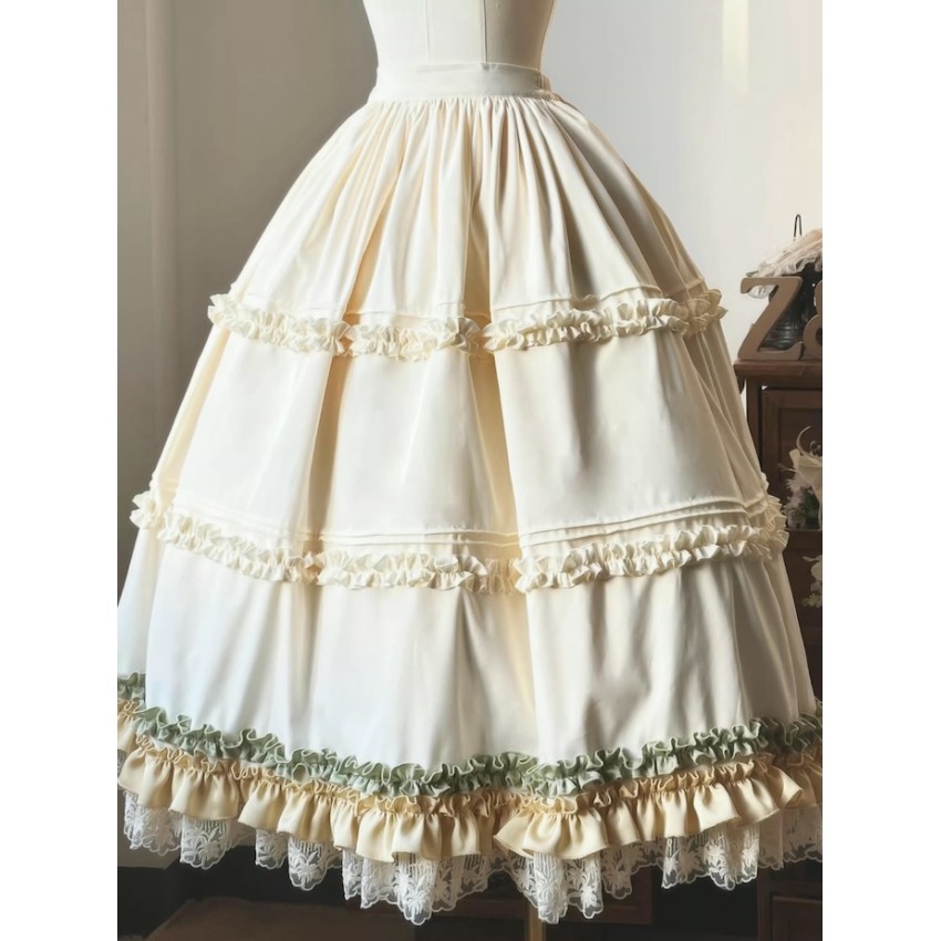 The larger end of Waist is the measurement when the back shirring is stretched(not the max stretch). The smaller end is laid flat measurement of the Underskirt without stretching the back shirring. It's not recommended to stretch the back shirring much in case of tight fitting(For your reference only).