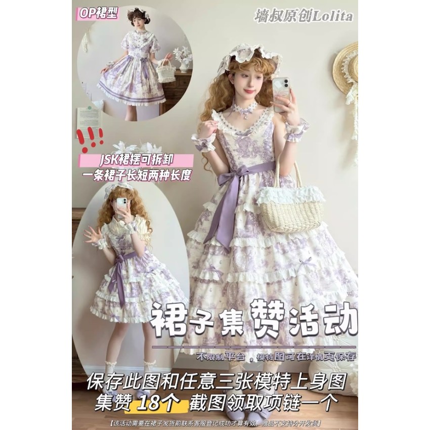 This is the full payment of the items WITHOUT shipping cost. You will have to pay the shipping cost after the items are released(We will inform you to pay the shipping then)If you prefer to put down a deposit for now(50% exclusive of shipping cost and pay the remainder after they are released) or do payment plans, please send us an email and order it through email like before.- The JSK length is adjustable - there's a detachable layer at the bottom. It can be a short version or a long version. For the short version, you can wear a 30-35cm long petticoat underneath and for the long version, you can wear a 60cm long petticoat underneath. The JSK includes a waist tie.- For the OP, you can wear a 40-45cm long petticoat underneath. The OP includes 2 detachable waist bows. The waist ties are not detachable.Closing Date: 30th/Apr/2026Estimated Release Time: Jun/2026